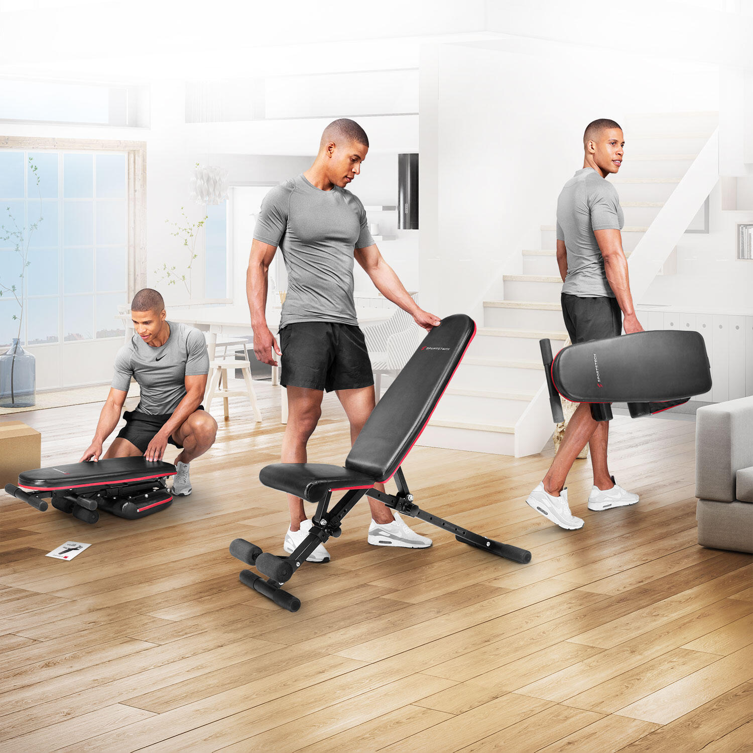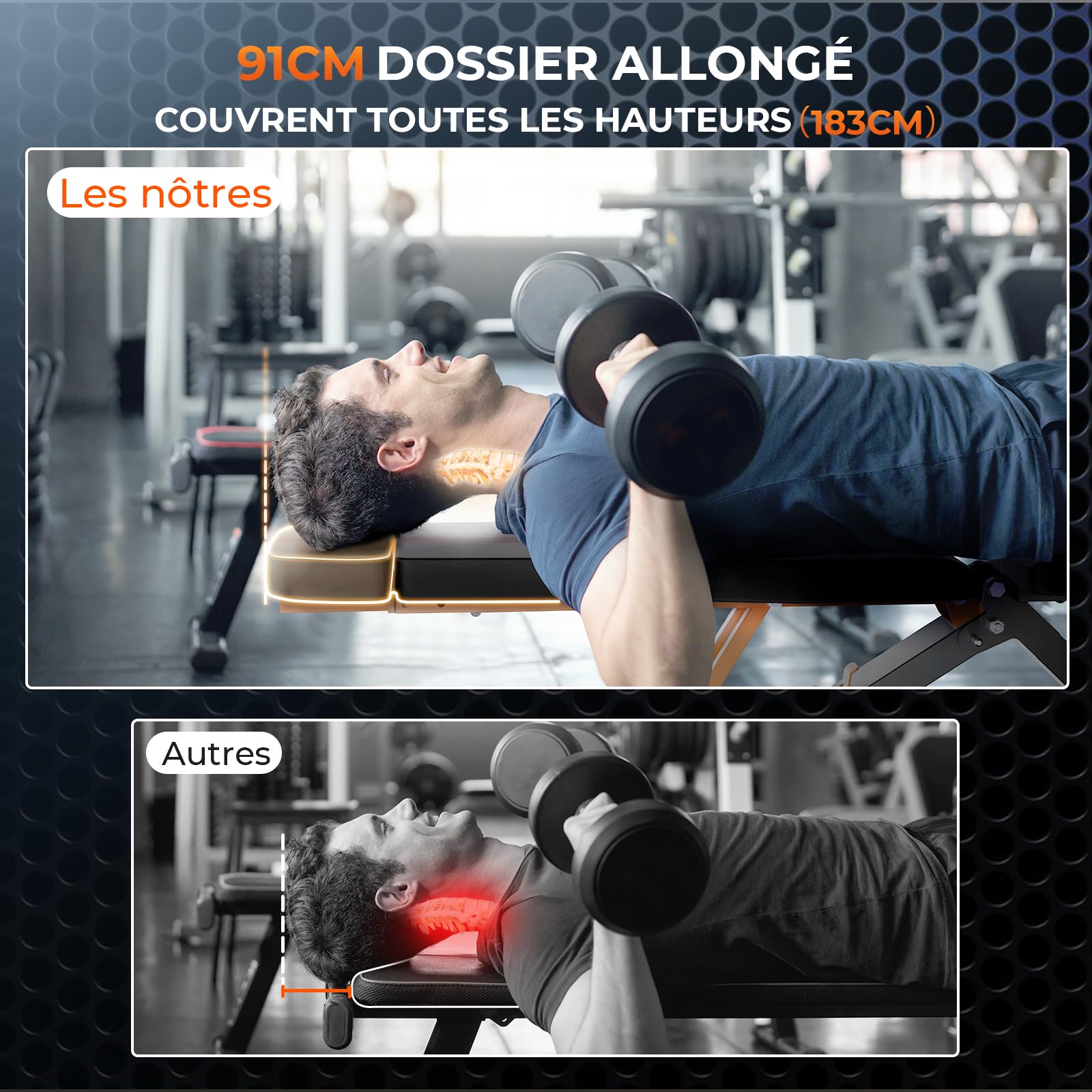 Sportstech BRT400 Banc de Musculation Premium - Pliable - 40+ combinaisons SPORTSTECH Banc de musculation complet decathlon Banc Réglable Banc De Musculation Pliable Réglable Abdominaux Et Dorsaux, Banc D Banc Fitness Polyvalent Pliable Banc de musculation pliable 400 kg - Banc de musculation complet réglable en acier commercial 80 x 40 mm pour entraînement complet du corps - Banc abdominal inclinable Pas de vacillement : ce banc d'entraînement dispose d'un stabilisateur de 52 cm de large et de vis renforcées pour offrir une inclinaison et une stabilité réglables et éviter les mouvements ou les déplacements latéraux pendant l'entraînement. Construit en acier commercial robuste, ce banc supporte jusqu'à 400 kg, garantissant durabilité et stabilité pour des entraînements intensifs du corps entier, s... Cadre en acier commercial robuste : ce banc d'haltères pliable, composé d'un cadre en acier carré commercial de 80 x 40 mm et d'une paroi tubulaire de 1,6 mm d'épaisseur, est beaucoup plus stable et peut facilement supporter des entraînements intenses. Couvre toutes les hauteurs (190 cm) : avec l'ajout d'un design d'appui-tête, la longueur du dossier du banc incliné peut atteindre 91 cm et accueillir des utilisateurs de différentes tailles (190 cm) tout en protégeant efficacement votre cou et votre colonne vertébrale. Expérience de confort ultime : avec un coussin d'assise de 5 cm d'épaisseur et une mousse haute densité, le banc de musculation vous offre un sentiment de sécurité et de commodité qui ne provient que de votre matelas préféré et réduit la fatigue musculaire pendant l'entraînement de tout le corps. Le dossier de 31,5 cm de large offre un soutien solide pour le dos et la taille des personnes de différents types de corps, ce qui rend votre banc de développé développé plus confortable et plus efficace.
