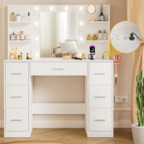 Coiffeuse Rangement 7 Tiroirs Airfish Coiffeuse Avec Miroir LED, Luminosité Réglable, Grand Espace De Rangement, Table De Maquillage Avec 4 Étagères, 3 Compartiments Et 7 Tiroirs, Style Moderne (Rose Bureau Coiffeuse LES Miroir Coiffeuse, LED Miroir de Maquillage avec 3 Modes d'Éclairage Airfish Coiffeuse avec iroir et LED, Table de aquillage avec 3... En plus d’être un dressing idéal, sa surface sert également de bureau de travail ou d’étude, offrant un espace polyvalent Avertissement De Sûreté Précautions d'utilisation : Essuyer avec un chiffon humide ou sec pour éviter les dommages. 【Espace de Rangement Ample】7 grands tiroirs fournissent suffisamment d’espace pour ranger cosmétiques, soins de la peau et outils de coiffure. Les rails fluides assurent une ouverture et une fermeture silencieuses des tiroirs Description du produit Son design sobre et blanc s’intègre parfaitement à n’importe quel style de décoration – moderne, scandinave ou rétro. 【Zone de Recharge Utile】Côté intègré: 2 prises AC, 1 port USB et 1 port Type-C. Idéal pour utiliser sèche - cheveux ou fer à friser, tout en rechargeant téléphones, tablettes ou casques – sans câbles en désordre En plus d’être un dressing idéal, sa surface sert également de bureau de travail ou d’étude, offrant un espace polyvalent Miroir de courtoisie éclairé, miroir de courtoisie avec 12 ampoules LED...