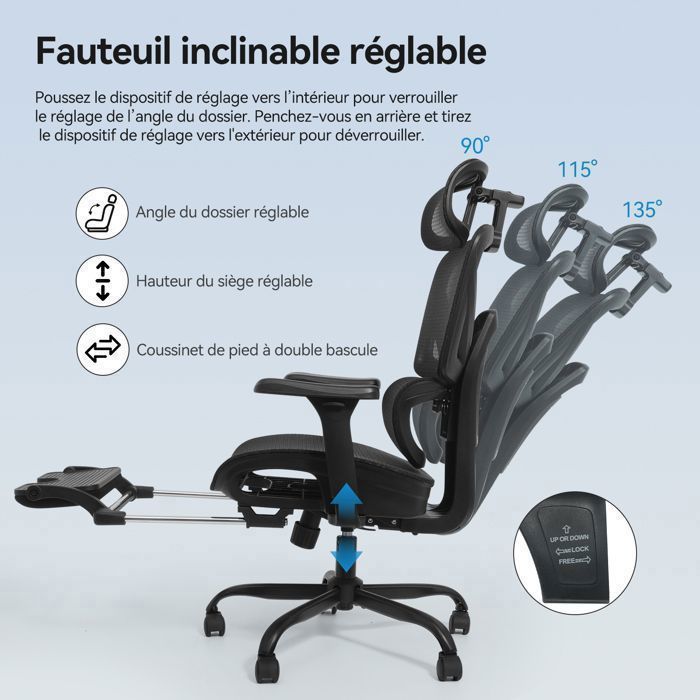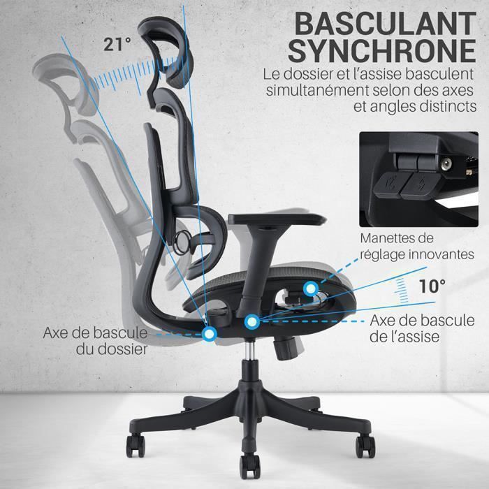 【𝐑𝐨𝐮𝐞𝐬 𝐞𝐧 𝐂𝐚𝐨𝐮𝐭𝐜𝐡𝐨𝐮𝐜 𝐒𝐢𝐥𝐞𝐧𝐜𝐢𝐞𝐮𝐬𝐞𝐬 – 𝐃𝐨𝐮𝐜𝐞𝐬 𝐞𝐭 𝐃𝐮𝐫𝐚𝐛𝐥𝐞𝐬】 Les roues pivotantes à 360° glissent silencieusement sur sols durs comme bois, carrelage ou stratifié, sans rayer ni user le sol. 1 Accoudoirs 3D 2 Roues silencieuses 3 Châssis renforcé 【𝐅𝐚𝐮𝐭𝐞𝐮𝐢𝐥 𝐝𝐞 𝐁𝐮𝐫𝐞𝐚𝐮 𝐂𝐞𝐫𝐭𝐢𝐟𝐢é – 𝐐𝐮𝐚𝐥𝐢𝐭é 𝐆𝐚𝐫𝐚𝐧𝐭𝐢𝐞】 Le fauteuil ergonomique BASETBL respecte la norme européenne EN 12520 pour fauteuils domestiques. La hauteur s’ajuste facilement pour glisser sous le bureau, parfait pour le télétravail ou le bureau. Il est équipé d’un vérin à gaz certifié TUV de classe 4 et d’un châssis solide pouvant supporter jusqu’à 200 kg. Trouver un fauteuil de bureau qui allie robustesse, confort et ergonomie n'est pas toujours chose aisée, surtout si vous passez de longues heures assis chaque jour. Le modèle « BASETBL Fauteuil de Bureau 200kg » pourrait bien être la solution à votre quête de confort optimal. Avec sa conception en cuir PU, son assise large et son dossier haut ergonomique, ce fauteuil assure un soutien... Chaque chaise est fournie avec des instructions de montage claires et une vidéo. Les points de verrouillage assurent stabilité et soutien durable pour épaules et bras. BASETBL EN12520 Chaise de bureau Vidéo de marchand Fauteuil Réglable Dossier Et Tête Fauteuil De Bureau Ergonomique VASEAT - Accoudoirs Réglables - Appui-tête Intégré - Noir Pas Cher | Bureau Vallée Chaise Confort Vérin Gaz Classe 4 Fauteuil de Bureau Certifié – Qualité Garantie] Le fauteuil ergonomique BASETBL respecte la norme européenne EN 12520... Nous offrons un service client réactif et une garantie de 2 ans pour votre tranquillité d’esprit. Le dossier extra-haut de 70 cm convient aux utilisateurs de 160 à 210 cm, garantissant une posture optimale même lors de longues heures assises, que ce soit au bureau ou à domicile. Elles prolongent la durée de vie du fauteuil et assurent un environnement de travail calme et propre. En cas de problème, nous remplaçons les pièces gratuitement. Fauteuil De Bureau Ergonomique BASETBL Fauteuil De Bureau 200kg, Ergonoique Assise Fauteuil Bureau 【𝐍𝐨𝐫𝐦𝐞𝐬 𝐝𝐞 𝐜𝐞𝐫𝐭𝐢𝐟𝐢𝐜𝐚𝐭𝐢𝐨𝐧 𝐞𝐮𝐫𝐨𝐩é𝐞𝐧𝐧𝐞𝐬】Notre gamme de produits a passé les tests de la norme EN12520 pour les chaises de bureau domestiques. 【𝐀𝐜𝐜𝐨𝐮𝐝𝐨𝐢𝐫𝐬 𝟑𝐃 𝐑é𝐠𝐥𝐚𝐛𝐥𝐞𝐬 – 𝐒𝐨𝐮𝐥𝐚𝐠𝐞𝐦𝐞𝐧𝐭 𝐝𝐞𝐬 É𝐩𝐚𝐮𝐥𝐞𝐬 𝐞𝐭 𝐝𝐮 𝐂𝐨𝐮】 Les accoudoirs en PU 3D sont réglables en hauteur de 7,5 cm, inclinables de 6 cm et pivotent jusqu’à 40° vers l’intérieur ou l’extérieur. Ils s’adaptent aux différentes tailles et positions assises. Le nouveau modèle F067 dispose de roues silencieuses et 3D, et d’accoudoirs réglables pour glisser facilement sous le bureau.