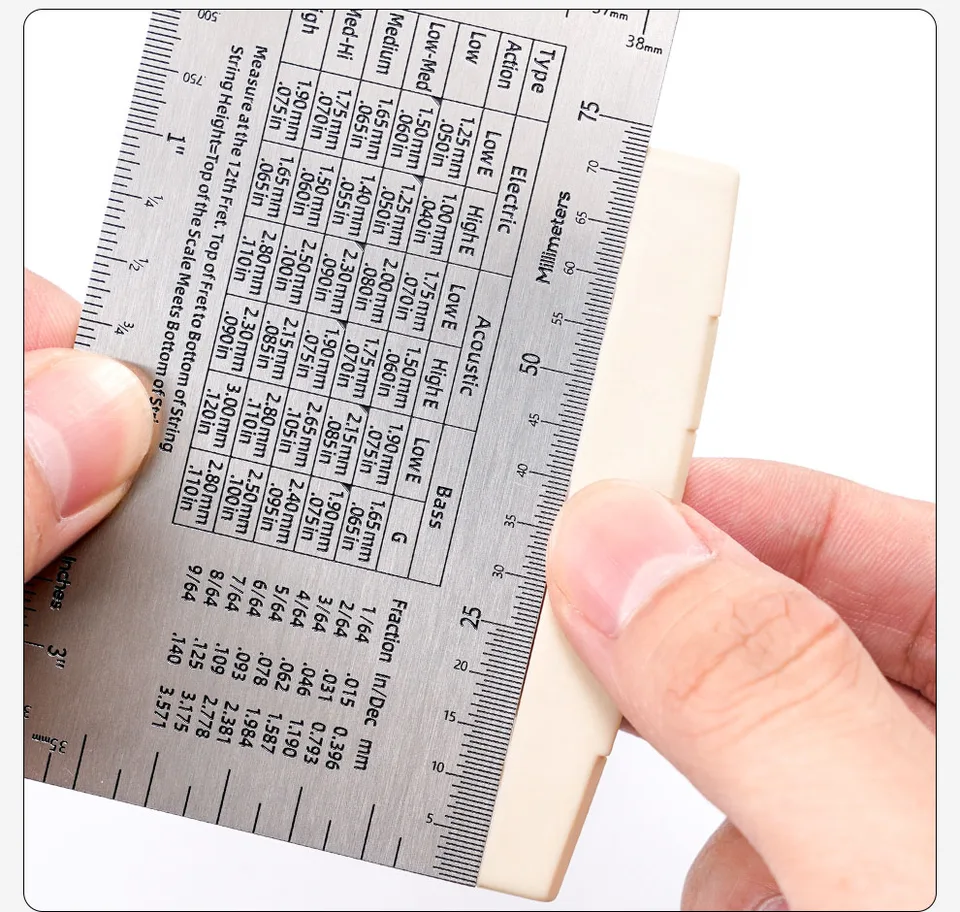 Règle D'Action À Cordes, Jeu De Règles De Mesure Pour Guitare Basse Convient pour la guitare classique, la guitare électrique, la basse, la mandoline, le banjo et autres instruments à cordes. Trop souvent oublié, il reste un acessoire pourtant indispensable Outil Luthier Mesure Hauteur Cordes Règle Conique à Cale En Acier Inoxydable, Jauge De... - Grandado Corde Guitare électrique L'outil de jauge de guitare est largement utilisé pour les instruments à cordes, tels que la guitare, la basse, la mandoline, le banjo, etc. La jauge de guitare adopte principalement en acier inoxydable de haute qualité, antirouille et durable, très pratique et utile, outil de mesure préféré pour les luthiers à faire soi-même, les guitaristes. EJ.life plaque de jauge à vis en acier inoxydable Outil de règle de... Les protections de touches en acier inoxydable de 2 tailles sont spécialement conçues pour protéger le clavier tout en travaillant sur les touches. Outil de guitare pratique : la jauge fournit une mesure précise de la hauteur des cordes, de la hauteur de la selle de chevalet, de la profondeur de la fente de selle, de la hauteur du piquet du micro, de la profondeur de la fente de frette et de la hauteur de l' Nous vous répondrons instantanément. Vous pouvez également nous envoyer des e-mails à tout moment si vous rencontrez un problème avec ce produit.