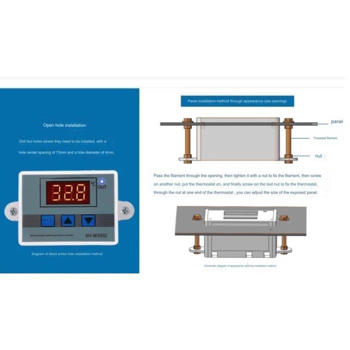 Sa construction robuste et durable, combinée à ses fonctionnalités avancées, en fait un investissement fiable pour une utilisation à long terme. Alarme Sécurité Limite Température Greluma 2 Pièces Régulateur De Température Numérique W3230 AC Regulateur De Temperature Facilité d’Utilisation :Ce thermostat numérique est conçu pour être convivial, avec une interface LED intuitive qui facilite la navigation dans les différents réglages. Précision et Fonction d’Étalonnage :Avec une plage de contrôle de température de -50°C à 110°C et une précision de réglage de 0,1 degré Celsius, le W3230 offre une régulation précise de la température. Lorsqu’une température critique est atteinte, le système déclenche une alarme audible, vous permettant de réagir rapidement et de protéger vos équipements et produits sensibles, assurant ainsi une tranquillité d’esprit lors de son utilisation. Matériaux Durables et Fiables :Fabriqué avec des matériaux ABS, le W3230 est non seulement robuste mais également conçu pour résister à des conditions variées. W3230 régulateur de température numérique 12V 24V 220V ligne de Sa capacité d’étalonnage vous offre la flexibilité nécessaire pour répondre aux exigences spécifiques de chaque utilisation, que ce soit pour la fermentation, la conservation des aliments ou le contrôle d’équipements industriels. Ne laissez pas les fluctuations de température compromettre vos projets; optez pour le W3230 et assurez-vous une performance de pointe dans tous vos dispositifs. Avec ses modes de chauffage et de refroidissement automatiques, vous pouvez vous concentrer sur d’autres tâches tout en garantissant que vos appareils fonctionnent de manière optimale. De plus, sa fonction d’étalonnage vous permet d’ajuster les paramètres selon vos besoins spécifiques, garantissant ainsi un contrôle adapté à chaque situation, que ce soit pour la conservation des aliments ou des processus industriels. Sa sonde étanche en acier inoxydable garantit une durabilité accrue, même dans des environnements humides ou peu cléments. Thermostat Digital|Contrôle précis de la température:Thermostat numérique verser une température de gestion fiable de -40 à 80°C. Compatibilité... Ce régulateur de température numérique W3230 est idéal pour divers équipements comme réfrigérateurs et climatiseurs. Avec une plage de régulation de -50 à... Doté d’une plage de température impressionnante allant de -50°C à 110°C, le W3230 vous permet d’ajuster avec précision le climat de votre environnement. Grâce à la possibilité de définir des températures limites, vous êtes protégé contre les risques de surchauffe ou de refroidissement excessif. Polyvalence d’Application :Le régulateur de température W3230 est conçu pour s’adapter à une multitude de machines, y compris les réfrigérateurs, congélateurs, climatiseurs, chambres de fermentation et systèmes CVC. Avec une tension d’entrée de 110V à 220V, ce dispositif est parfaitement adapté à une large gamme d’applications, que ce soit dans un cadre domestique ou professionnel.
