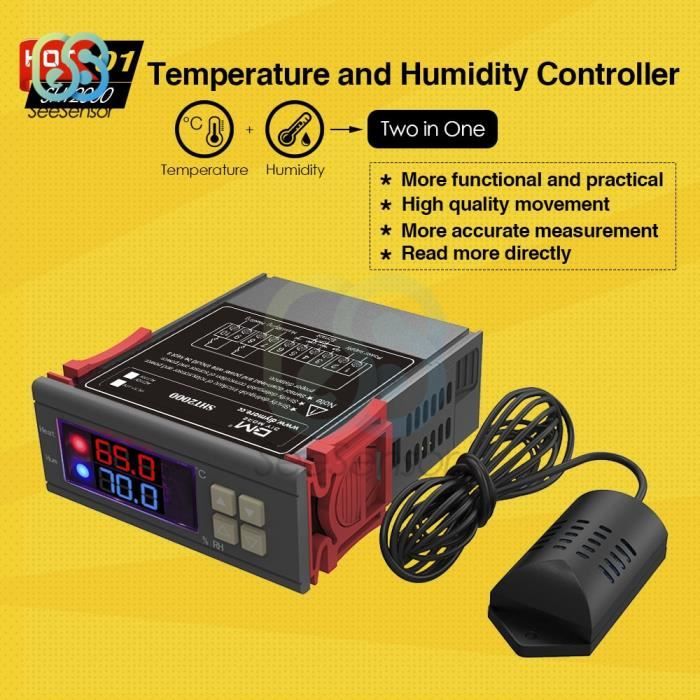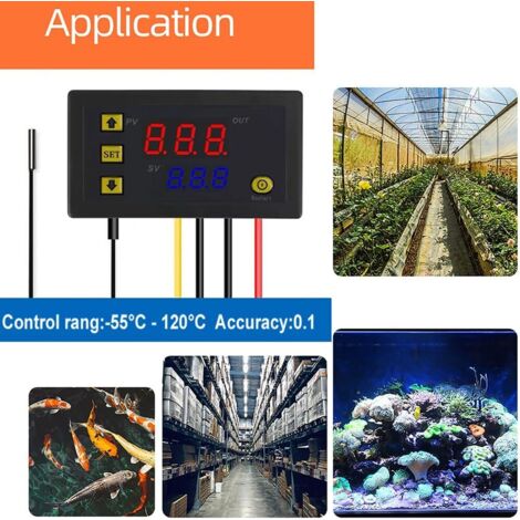 KIMISS thermostat réglable Interrupteur de Thermostat de contrôleur de... Affichage numérique intuitif: ---- La conception de l'affichage numérique élégant montre clairement des lectures de température, améliorant votre efficacité et garantissant que vous pouvez surveiller vos paramètres de température intuitivement., 栾 Problème imperméable fiable: ---- Équipé sonde imperméable et d'un câble de 1 mètre, la sortie de relais 20A garantit ce module de thermostat numérique fonctionne efficacement dans diverses conditions, ce qui le rend pratique pour toute configuration., 栾 Contrôleur Température Aquarium Terrarium Régulation Précision 0.1°C Thermostat Numérique 12V - Régulateur De Température Haute Précision Avec Sonde Régulateur De Température 12v Thermostat étanche -50 110°C Contrôle de haute précision: ---- Ce module de contrôleur de température W3230 F plage de contrôle impressionnante de ‑50‑110 ℃, ce qui en fait le thermostat numérique idéal pour une régulation précise de la température dans diverses applications., 栾 KIMISS Interrupteur de Thermostat de Contrôleur de Température Numérique XH-W3001 avec Sonde de Capteur Imperméable - Contrôle de la Température de Précision pour Diverses Applications (110-220V / : : Commerce, Industrie et ScienceÀ propos de cet article Précision numérique avancée Spécification Type d'article: contrôleur de température Matériel: Abs Résolution: 0,1 à -9,9-99,9, 1 ℃ à d'autres plages de température Plage de contrôle de la température: -50-110 ℃ Précision de mesure: 0,1 ℃ Sonde de détection: sonde étanche 1 mètre Précision de contrôle: 0,1 ℃ Capacité de sortie: 1 Capacité de sortie de relais 20A Exigence environnementale: Température: -10-60 ℃ Humidité: 20% -85% Mode d'emploi Liste des packages 1 x contrôleur de température 1 x câble de sonde étanche Note Acboor XH-W3001 Thermostat numérique 12 V 120 W Interrupteur thermostat
