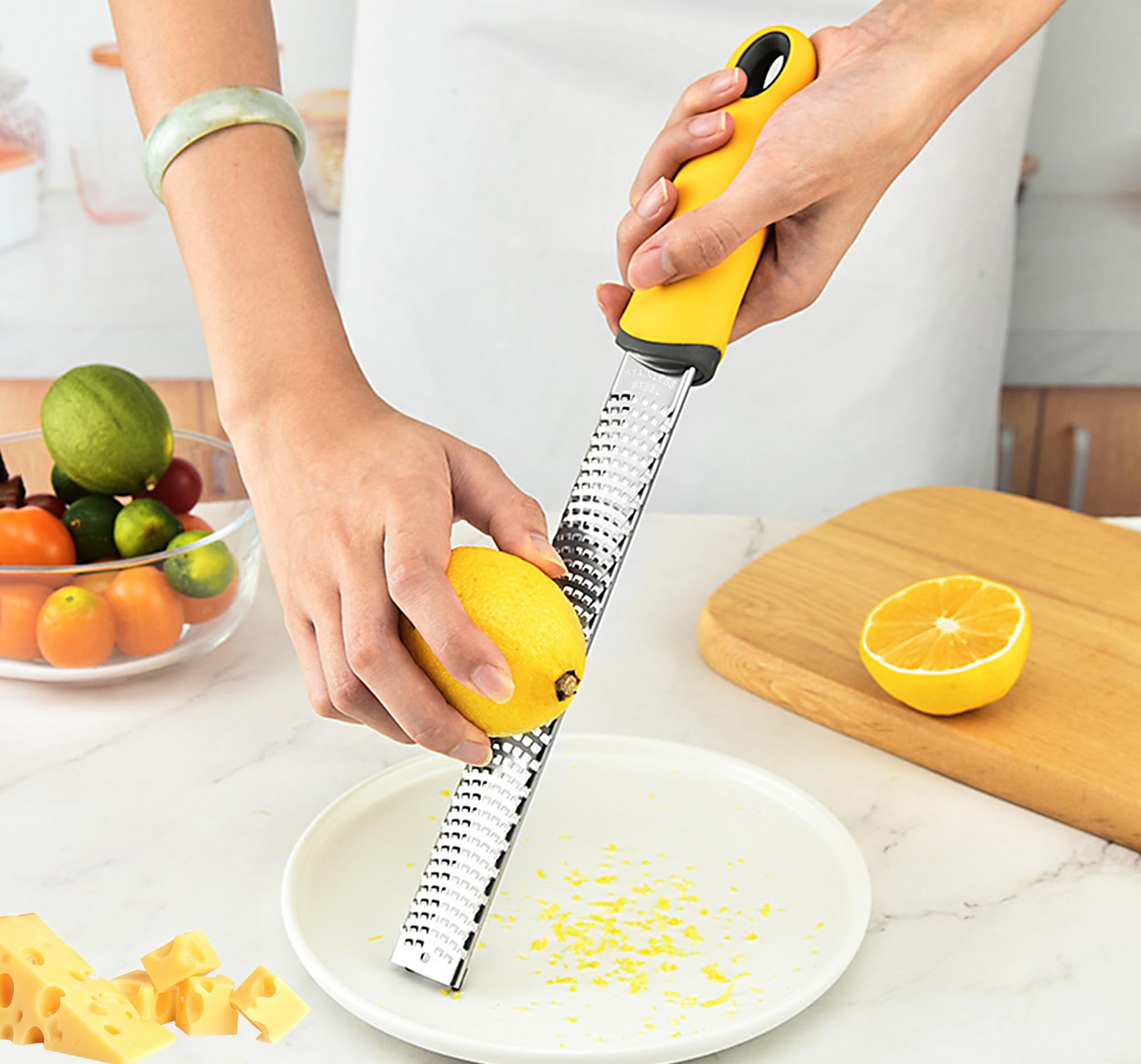 L'angle de la lame est idéal, suffisamment élevé pour glisser sans effort sur les ingrédients, sans être trop agressif. Facile à ranger : Comparée aux modèles électriques encombrants ou aux zesteur agrumes encombrantes, cette râpe fine est compacte et facile à ranger. De plus, elle est livrée avec un étui de protection qui protège la lame pour un rangement facile Lame tranchante en acier inoxydable : Conçue avec une lame tranchante en acier inoxydable, cette zesteur offre une performance fluide et efficace à chaque fois. Râpe à fromage Familiale Inox de type Bari Vous obtenez ainsi des résultats nets et précis avec un minimum d'effort Que vous zestiez des citrons, râpiez du chocolat ou prépariez de l'ail et du gingembre, cet outil s'adapte facilement à une grande variété d'ingrédients. Râpe à omage manuelle, acier inoxydable tranchant classique de... Que vous soyez un cuisinier chevronné ou débutant, cet outil pratique rend la cuisine plus agréable et efficace Zesteur pour Agrumes Parmesan Gingembre Chocolat Noix de Muscade Citron Elle se glisse facilement dans un tiroir de cuisine ou se suspend facilement à un crochet. Râpe à Fromage Manuelle Diboniur , Zesteur Pour Agrumes Parmesan Rapeuse Legume Deiss Pro Zesteur d'agrues et râpe à froage - Paresan citron... Design confortable : Conçue pour le confort et la maîtrise, la rapeuse fromage est dotée d'une poignée en caoutchouc robuste et de pieds antidérapants qui la maintiennent stable pendant l'utilisation.