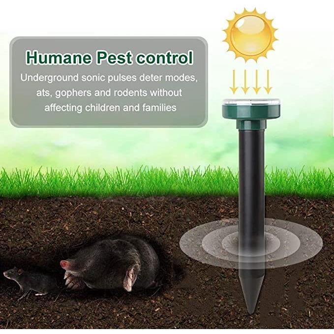 En général, il faut environ 2 à 4 semaines pour chasser les taupes et les campagnols de votre jardin. Repousse Taupes Campagnols Vibrations Ultrasons Anti-rongeurs Répulsif Anti-Taupes Solaire à Ultrasons Protection Jardin Pelouse écologique Remarque : Placez la pile de répulsif de souris solaire à la lumière du soleil pour charger pendant au moins 2 jours avant l'installation. Protège divers objets tels que les jardins d'hôtel, les jardins de villas, les fermes, les rizières et les champs agricoles contre les taupes. [Large gamme de travail efficace] pour une performance optimale, nous vous recommandons de placer le répulsif anti-taupes tous les 70 pieds sur la pelouse 【Convient aux enfants et aux animaux domestiques】Le répulsif à taupes à énergie solaire émet des impulsions à basse fréquence pendant 3-4 secondes toutes les 20 secondes, pénétrant dans le sol et se débarrassant des taupes dans votre cour. Un panneau sale réduira la quantité de lumière solaire disponible pour charger les batteries de l'unité. Effet : le répulsif anti-taupes éloigne les taupes et les campagnols de votre jardin. L'appareil émet des vibrations dans le sol, elles dérangent les... Le meilleur endroit pour le mettre est là où les taupes fréquentent. 【Une protection efficace】Les pointes de taupe fonctionnent de manière circulaire, chaque répulsif à campagnols à l'extérieur a une portée efficace jusqu'à 7000 pieds carrés. 【Facile à installer】Utiliser une tige de bois ou d'acier pour faire un trou pilote. écologique Animaux Répulsif Solaire Anti-Taupes Et Serpents - 4 Recommandez une installation des répulsifs de taupe de cour sur tous les 70 pieds à travers votre pelouse pour une performance optimale. Insérez le répulsif solaire à taupe ultrasonique dans le sol jusqu'à ce que le capuchon soit à environ 2 pouces au-dessus du sol.