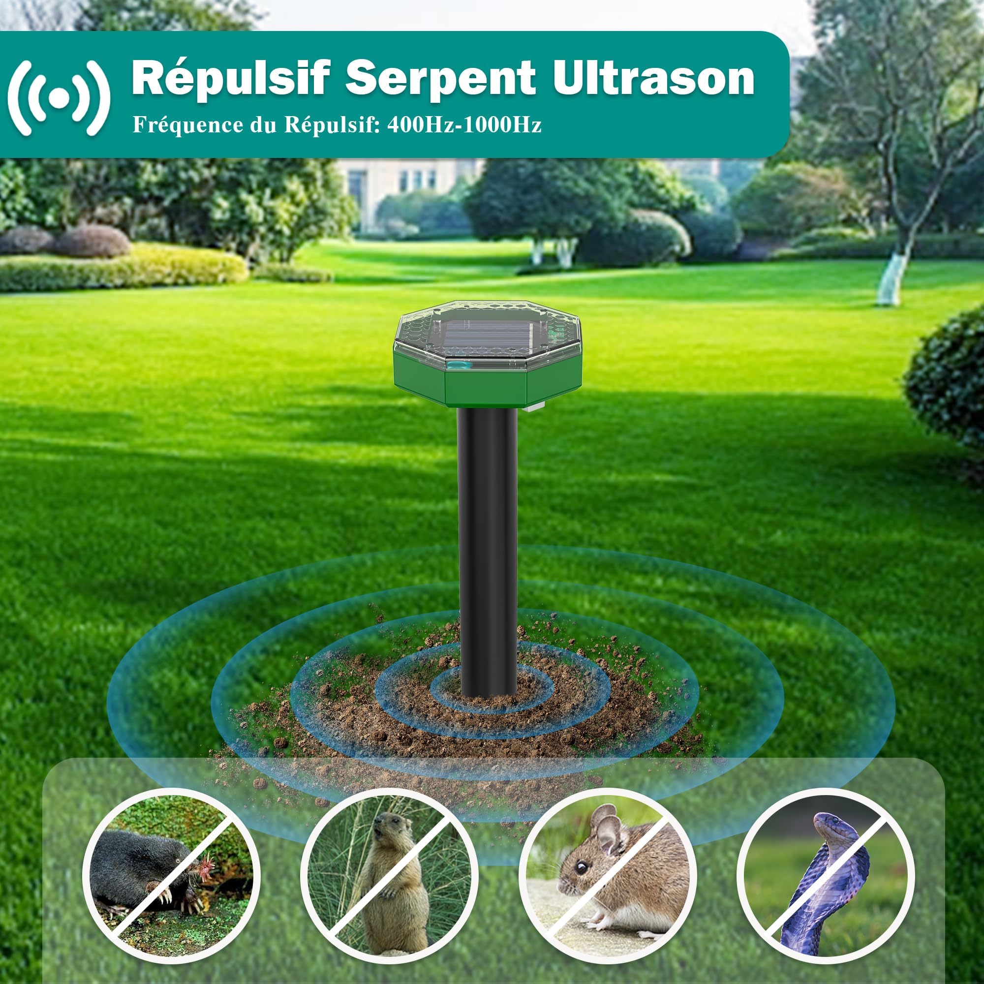 26,99 € ... GARDIGO® Répulsif Anti Taupes Solaire à Ultrason 4 pièces ; Chasse Taupes, Serpents et Rongeurs; Piège à Taupe Écologique et Puissant; Portée jusqu'à... 【Imperméable & Durable】Anti taupe solaire est fabriquée en ABS et PC de haute qualité avec un design imperméable, anti-corrosion et ignifuge, Excellente résistance à l'eau, Il peut être utilisé en toute confiance même par mauvais temps comme la pluie. 【Facile à utiliser】Choisissez un endroit ensoleillé où le panneau solaire reçoit autant de lumière directe que possible, puis allumez l'interrupteur et branchez le taupe ultrason solaire dans le sol pour compléter l'installation, Protégez jardins/ pelouses/ cour/ ferme Répulsif Taupe Répulsif Solaire Pour Taupes - Répulsif Pour Chat - Répulsif Pour Chat Repulsif Taupe 【Efficace et Sécurité】Ce repulsif taupe pour souris ne contient aucune substance nocive, émet des impulsions sonores et des ondes ultrasoniques toutes les 20 secondes pour repousser les souris, Stimule le système nerveux central des souris en vibrant et en émettant des ondes sonores de 400 à 1000 Hz, Il fait sentir les animaux mal à l'aise et peut être rejeté sans les endommager, Peut repousser les taupes, serpents et autres animaux, Sans danger pour l'environnement, l'homme et les animaux. Totalement écologique et sans danger pour les humains, les animaux domestiques et l'environnement, ce système discret préserve l'esthétique de votre jardin tout en protégeant efficacement pelouses, potagers et espaces verts Repulsif Taupe Solaire 6 Pièces Répulsifs pour Taupes à Ultrasons 1 pièces Répulsif Solaire Anti Taupes, pour Pelouse, Jardin, Rond | Leroy Merlin