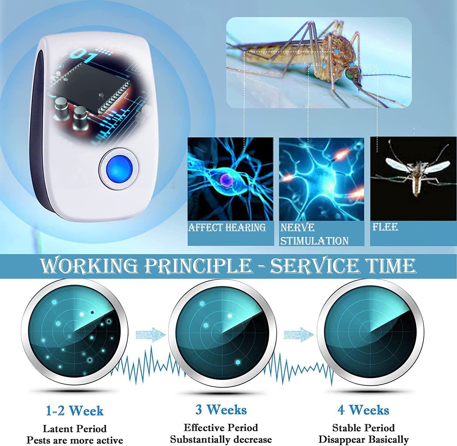 【Dernière technologie ultrasonique】 L'insectifuge à ultrasons utilise la dernière puce mise à jour, qui émet de puissantes ondes ultrasoniques pour immuniser les insectes et les rongeurs plus efficacement qu'auparavant. ✔La réduction ultime du bruit n'affecte pas votre sommeil. ✔Sans produits chimiques, non toxiques, inodores et 100% inoffensifs pour les personnes et les animaux domestiques. Parce que les ondes ultrasonores ne peuvent pas pénétrer dans les murs et les objets solides. ✔Peut être largement utilisé dans les maisons, appartements, restaurants, hôtels, entrepôts, centres commerciaux, magasins, bureaux ou partout où cela est nécessaire . Large couverture efficace]Le répulsif électronique contre les moustiques est efficace dans une zone intérieure allant jusqu'à 1200 pieds carrés. Il est également idéal pour les Chambres, les centres commerciaux, les bureaux, les garages, les greniers, les sous - sols, les entrepôts 【Large application】Notre anti-moustique à ultrasons peut être utilisé dans n'importe quelle maison avec alimentation électrique, comme les maisons, appartements, entrepôts, magasins, ateliers, restaurants, hôtels, etc. Emballage inclus :6* Anti-moustique 1*Manuel d'utilisation Remarque : b1., Veuillez le garder hors de portée des enfants., 2., Veuillez ne couvrir aucun objet sur la surface afin de ne pas affecter l'effet., 3., Pour des résultats optimaux, il est recommandé de placer un appareil dans chaque pièce. Spécification :Couleur : Blanc/VertMatériau : ABSPuissance : 4 WFréquence ultrasonique : 9-36 KHz Taille : 3,5*2,2*2,2 poucesPoids du produit : 310/6 piècesSurface effective : 80-120 m²/unité Caractéristiques du produit : ✔Une technologie ultrasonique puissante perturbe et stimule le système nerveux central des insectes, repoussant efficacement divers parasites. Anti Insectes électronique Sans Produit Chimique Vinmall 6pcs Répulsif Ultrasons - Repulsif Moustique, Anti Mouches Anti Moustique Intérieur Ultrason Anti Moustique, 4 Packs Répulsif à Ultrasons Insectes... 【Facile à utiliser】Branchez simplement le répulsif anti-moustiques à ultrasons dans une prise située à 30-80 cm au-dessus du sol et évitez les obstacles tels que les rideaux ou les casiers à utiliser. 【Large couverture efficace】La zone de couverture efficace de la lutte antiparasitaire par ultrasons peut atteindre 80 à 120 mètres carrés, ce qui peut facilement couvrir de grandes pièces. Les ondes ultrasoniques perturbent et stimulent le système nerveux central des insectes, les rendant mal à l'aise, effrayés et fuyant, combattant efficacement les moustiques, les souris, les cafards, les araignées, les fourmis, les mouches, les punaises de lit et autres parasites. pour repousser efficacement les moustiques, les souris, les araignées, les fourmis, les coléoptères, parasites, punaises de lit, mouches, cafards, puces et autres insectes. Répulsif Ultrasons 4 Pack Repulsif Moustique Mouches Electrique 【Sûr et respectueux de l'environnement】Notre lutte antiparasitaire par ultrasons est 100 % sans danger pour les humains et les animaux domestiques. La machine fonctionne en appuyant une fois sur le bouton de l'interrupteur. La veilleuse s'allume. Instructions :Cet appareil ne fonctionne pas lorsqu'il est allumé.
