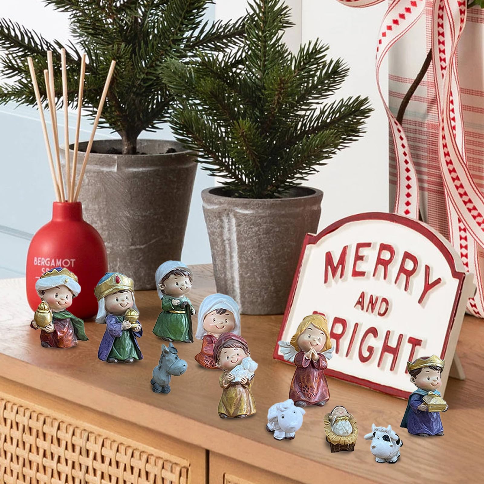 Ensemble de crèche de Noël - Statue et figurines en résine - Crèche de Ils sont imperméables, robustes, sûrs et durables, garantissant une décoration durable. Crèche Moderne Résine 6 Pièces Crèche De Noël En Résine : Ensemble De 12 Pièces Avec Mangeoire En Bois - France Crèche Noël Figurines Excellent artisanat : nos ensembles de crèches et figurines sont soigneusement fabriqués avec des matériaux en bois et en résine de haute qualité. Notre collection de crèches de Noël propose des ensembles complets, des santons, des figurines, des décors et des accessoires. Chacun peut façonner sa propre... Crèche de Noël en résine – 24,5 cm – Tons ivoire et argent · Style : élégant et intemporel · Crèche harmonieuse et lumineuse, facile à placer dans tout type d... La statue catholique de la Sainte Famille représente l'amour, l'amitié, la famille et l'espoir. Parfait pour les centres de table, les étagères, les rebords de fenêtre, sous le sapin de Noël, la statuette de naissance en résine ou même comme sujet de conversation lors d'événements festifs. Large application : cadeau parfait, crèche de Noël avec figurines, également accessoire décoratif pour les croyances et les célébrations religieuses. Célébrer la signification religieuse de la plus belle période de l'année., Remarque : 1., Les mesures étant prises à la main, les tailles indiquées peuvent varier légèrement., 2., La couleur de l'article peut varier de celle de la photo, en fonction des paramètres d'affichage et de luminosité de votre ordinateur., 3., Je vous souhaite de bons achats en ligne ! Encourage la relation parent-enfant : crèche de Noël. Matériau : résine.