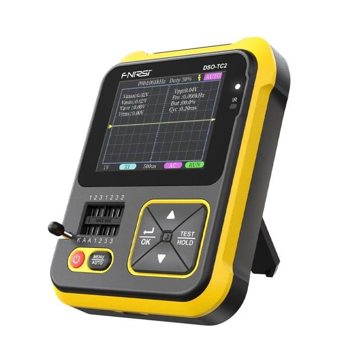 Contenu de l'emballage : 1., 1 compteur LCR LC1020E., 2., 1 câble de données., 3., 1 carte de court-circuit., 4., 1 clip de test Kelvin., 5., Test (1 noir + 1 rouge)., 6., 1 manuel d'utilisation (français non garanti). Mesure précise] : réalisez des tests de qualité laboratoire avec le pont numérique LC1020E, offrant une précision de base jusqu'à 0,3 % sur de larges... Cette conception minimise les erreurs d'impédance et maximise la précision de mesure lorsque vous travaillez avec des appareils de test professionnels, assurant des lectures précises pour les applications critiques. Son design compact est une puissante batterie au lithium rechargeable de 3,7 V, 3000 mAh. Multimètre LCR Numérique Haute Précision LC1020E LC1020E Testeur De Résistance à L'inductance Numérique Avec Appareil Mesure 5 Fréquences 100Hz-100kHz Configuration avancée des terminaux : profitez des options de port de test double – une prise pratique à trois bornes pour des mesures quotidiennes rapides et une configuration à cinq bornes prenant en charge les mesures Kelvin à quatre terminaux. La configuration à cinq bornes prend en charge les mesures Kelvin complètes à quatre bornes lorsqu'elle est utilisée avec des appareils de test professionnels, minimisant les erreurs d'impédance et la plus haute précision de mesure., 4., Tri intelligent des composants et enregistrement des données : la fonction de comparaison intelligente améliore considérablement l'efficacité des tests par lots. Mesurez les paramètres primaires (L/C/R/Z) et les paramètres secondaires (X/D/Q/◊/ESR) simultanément sur l'écran couleur TFT vibrant de 2,8 pour une évaluation complète des composants. Tri intelligent des composants : rationalisez les tests par lots avec la fonction de comparaison intégrée qui trie automatiquement les composants en fonction des valeurs nominales et des tolérances définies par l'utilisateur (0,1 % à 99,9 %). Les invites visuelles et audio indiquent clairement les résultats de réussite/échec, tandis que le mode d'enregistrement des données enregistre les statistiques de contrôle de qualité, ce qui rend cet instrument excellent pour les environnements de test de production. Le mode d'enregistrement des données enregistre le nombre de mesures réussies et d'échec pour un contrôle de qualité efficace., 5., Design portable, affichage clair et longue durée de vie de la batterie : le LC1020E est conçu pour une utilisation en laboratoire, ligne de production et sur le terrain. La valeur nominale et la tolérance peuvent être réglées, avec une plage réglable de 0,1 % à 99,9 %., 12., Fonction d'enregistrement : vérifie si les données du composant mesuré correspondent à la valeur nominale et à la tolérance définies, et enregistre le nombre de mesures réussies et échouées., 13., Configuration du terminal de test : trois bornes, cinq terminaux., 14., Impédance de sortie : 100 Ω., 15., Interface de communication : type C (port série virtuel) 16., Autres fonctions : réglage de la langue, luminosité de l'écran, paramètres sonores, mise hors tension automatique, paramètres d'étalonnage, informations système. Fonction de comparaison: utilisée pour calculer l’erreur relative entre la valeur de mesure du composant et la valeur nominale, affichée en pourcentage et fournit des résultats de s valeurs nominales et une tolérance peuvent être définies, avec une plage de tolérance réglable de 0,1 % à 99,9 Il vous suffit de définir la valeur nominale et la tolérance (0,1 % - 99,9 %) pour trier automatiquement les composants, avec des résultats réussis/échec confirmés via des invites visuelles et audio. Design portable de qualité laboratoire : prenez des mesures professionnelles n'importe où avec cet instrument compact alimenté par batterie doté d'une batterie au lithium rechargeable de 3,7 V 3000 mAh pour une utilisation prolongée sur le terrain. Hantek Compteur LCR numérique 1833C Portable Inductance Capacitance et Résistance Mesure Outils avec 10 Fréquence de Test Typique