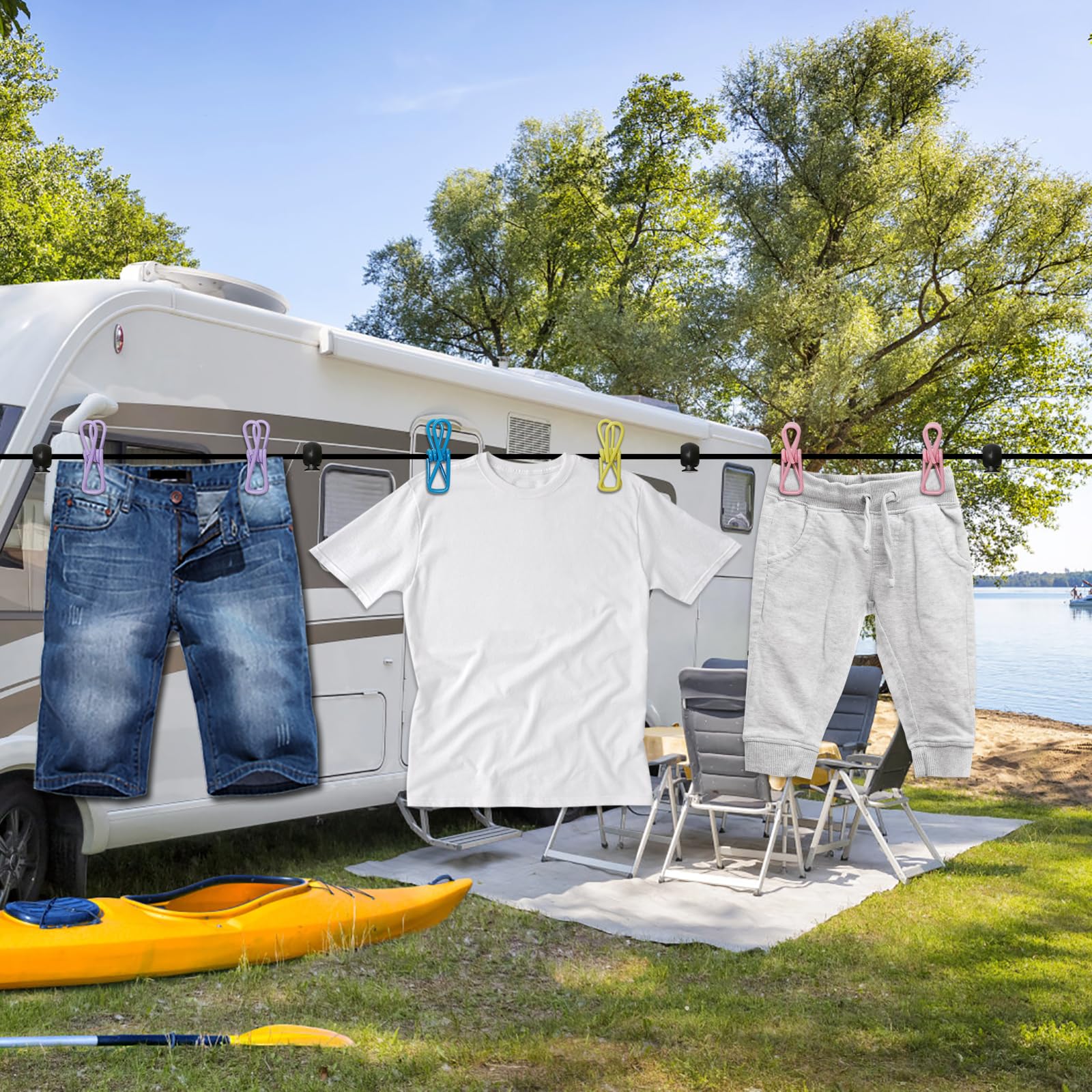 VBESTLIFE corde à linge rétractable pour la maison Corde à Linge Rétractable, Corde à Linge La corde noire est rétractable et extensible jusqu'à 3,6 mètres. Séchage Intérieur Extérieur Corde à Linge Portable Corde à Linge Rétractable Exterieur De 10m Corde à Linge Extensible Pour Corde A Linge Castorama Conception créative antidérapante : Ce corde a linge retractable est livré avec 12 pinces à linge colorées et 13 pinces antidérapantes, une conception coupe-vent et des billes de positionnement pour un mouvement fluide à gauche et à droite. Corde à linge Rétractable, 12M Étendoir à linge Corde à Linge... Corde a Linge Retractable,Corde à Linge Antidérapante Portable,Corde à... Idéal pour les voyages, le camping, l'extérieur et l'intérieur. Vous n'avez pas à vous soucier de l'accumulation de vêtements sous l'effet du poids ou du vent, ce qui améliore l'effet de séchage. Un incontournable pour les caravanes et les caravanes. C'est un excellent équipement de camping, permettant de laver, ranger et organiser facilement les vêtements, à l'intérieur comme à l'extérieur. Il est idéal pour les voyages, le camping et la maison. Robuste et durable : Ce corde a linge est robuste et durable, avec deux crochets robustes en acier inoxydable, faciles à installer et à retirer.