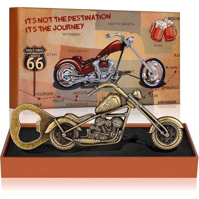 ZONSUSE Décapsuleur de Moto Magnétique, Ouvre-bouteille de Bière Vintage, Décapsuleur Unique Ce n'est pas seulement un gadget pratique pour les amateurs de moto qui apprécient la fonctionnalité et le confort dans leur vie quotidienne, mais aussi un accessoire élégant pour les hommes qui apprécient leur temps avec une bière fraîche. Cadeau Biere AUAUY Décapsuleurs Bière Moto Rétro, Décapsuleur De Bière Vintage En Forme De Motocyclette Avec Ouvre Bouteille Moto - Ce décapsuleur de bière vintage pour moto est adapté pour les bouchons de bouteilles standard, les bouteilles de soda, les bouteilles de bière et plus encore. Décapsuleur de Moto, Tire-Bouchon à Bière en Métal, Décapsuleur de Moto... Décapsuleur De Bière De Moto Gris, Cadeau Homme, Cadeau Fête Des Pères... Facile à transporter : le décapsuleur de moto est petit et léger (environ 70 g de poids), facile à transporter, taille compacte, vous pouvez l'emmener partout avec vous, s'adapte parfaitement à votre main, sac, sac à dos ou tiroir de cuisine sans vous gêner Spécifications: Couleur : argenté. Large application : il peut être utilisé comme objet décoratif pour les intérieurs tels que les maisons, les cuisines, les clubs, les restaurants ou les bars, mais aussi comme décapsuleur amusant pour les fêtes, les barbecues, les pique-niques et autres événements en plein air - Le design rétro à l'ancienne, combiné au motif de moto, est très nostalgique et très approprié pour la collection pour souligner le goût unique et le charme de la culture des motos. Contenu de l'emballage : 1 décapsuleur de bière vintage pour moto - Le décapsuleur moto est fabriqué en alliage de zinc durable, soigneusement travaillé, adopte le processus de moulage sous pression et a une texture parfaite, ce qui est très bien un cadeau pour vos parents et amis.