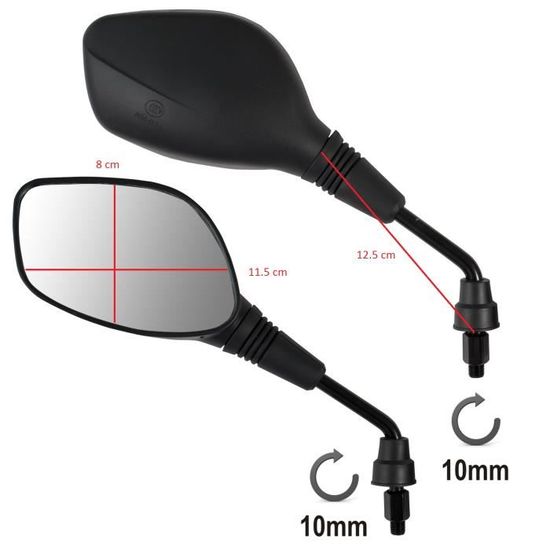 Vous pouvez trouver un angle plus approprié pour la conduite pour obtenir une plus grande visibilité et profiter d'une conduite plus sûre. VISION CLAIRE, CONDUITE SÛRE Avec une surface de 105x105 mm, le rétroviseur moto offre une vision claire et large de tous les objets et des autres motos. Vous pouvez donc l'utiliser en toute confiance. Rétroviseurs universels pour moto Avec ce miroir de moto, vous pouvez conduire en toute sécurité et profiter de votre trajet Argent)Rétroviseurs universels pour moto, tête de mort, pour Suzuki Boulevard M109R M50 LARGE APPLICATION Le rétroviseur de moto est compatible avec une large gamme de motos, ATV, Scooters, Moped, Quad, cyclomoteurs et autres pour répondre à différents besoins. Rétroviseur de moto cool Nos rétroviseurs pour moto ont un boîtier ABS résistant aux chocs et un plastique avec protection contre les chocs, et sont fabriqués avec un revêtement de haute qualité, résistant aux rayures et durable. Paire noire Rétroviseur Grand Angle,2 Pack HD Voiture Rétroviseurs 360 Ronde Auto Rétroviseurs... Durable et stable, résistant aux chocs et à la corrosion, adapté à l'utilisation dans diverses conditions météorologiques et hors route. Boîtier du rétroviseur : ABS, Couleur : Noir Compatibilité : Le diamètre de la vis du miroir est de 10mm, l’espacement des filetages est de 1,25mm et le sens du filetage des deux miroirs est dans le sens des aiguilles d’une montre, veuillez confirmer si le guidage du filetage correspond au diamètre à l’interface du miroir avant d’acheter. Miroir Moto Réglable 360 CHAFT Paire De Rétroviseurs Universel Adaptable SMITH Pour Moto Homologué CE - RE109 Rétroviseur Moto Noir ABS Large Vision Large application] Ces rétroviseurs latéraux sont livrés avec 4 vis d'expansion qui conviennent pour un diamètre de rappelle de direction de 13 à 22 mm. Ils peuvent également être installés sur le vélo et sont faciles à installer Matériaux de Haute Qualité: Ces Rétroviseur Latéral sont faits de métal de haute qualité, de verre et d'un couvercle arrière en plastique ABS durableStructure plus solide.