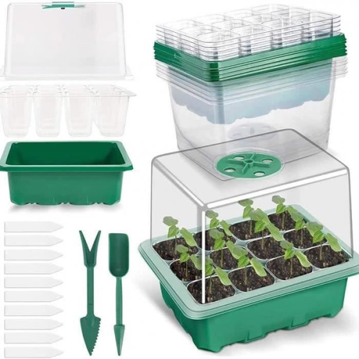 Plateaux De Semis Réutilisables 10 Pièces Plateau Semis Réutilisable Godet Semis Biodegradable,Pots En Kit Jardinage Alvéoles Graines Plaques multipots - Plaques alvéolées parfaites pour semis et bouturage Composé de 28 cellules de 12 cm de profondeur s’ouvrant en 2 avec fentes de ventilation latérales pour un bon drainage et une structure racinaire solide et saine, réutilisables, à placer dans un bac plastique de 38 x 23,5 cm, 20 cm de haut avec couvercle transparent muni d’un ventilateur... C'est le meilleur choix pour une bonne aide dans le jardinage domestique. 🌱 Observez la croissance des plantes : la boîte de semis transparente peut voir plus intuitivement le développement des racines de la plante, et la boîte de semis peut permettre à la plante de pousser proprement et uniformément. il convient très bien aux jardiniers, aux producteurs et aux agriculteurs, et il convient également très bien à la plantation à domicile. Caractéristiques du produit: La boîte à semis facilite la croissance d'une variété de semis, une combinaison équilibrée de nutriments fournit les meilleurs soins pour les semis. 🌱 Plateau de démarrage de haute qualité : fabriqué en plastique épais, super résistant et sans BPA pour garantir une utilisation 100 % durable et durable, vous pouvez découvrir le plaisir de grandir à la maison avec votre famille et vos enfants. 🌱 Dimensions : le kit de germination des graines comprend 5 pots de pépinière, 24 étiquettes de plantation. Vous pouvez obtenir 120 petits pots qui peuvent être plantés, et la taille de chaque pot de semis est d'environ 20*15*4., 5cm ou 30., 2*21., 7*5cm. EN STOCK : Plaque de semis pas cher. Grand choix, promos permanentes et livraison rapide partout en France. Paiement sécurisé