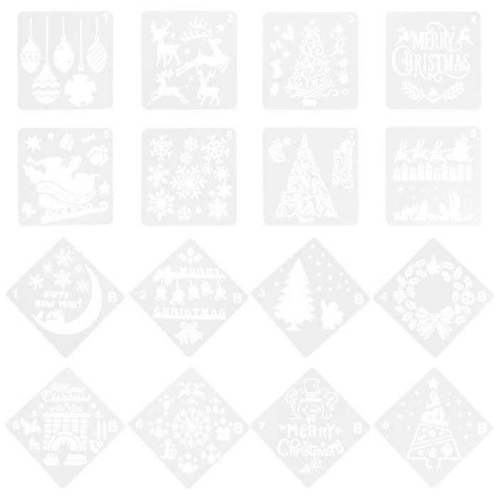 Lot de 64 pochoirs de Noël réutilisables pour peinture, 7,6 Lot de 30 petits pochoirs de Noël réutilisables pour peinture sur bois - 7,6 cm - Pochoirs de Noël pour décoration, loisirs créatifs, boules de Noël... Pochoirs PET 7.6cm 64 Pièces Pochoirs Réutilisables Pour Peinture 7.6×7.6cm Pochoir Pochoirs Noël Réutilisables Spécification : Couleur : blanc Matériau : matériau PET Taille du produit : 7,6 x 7,6 cm Détails du forfait : 64 x pochoirs de Noël Remarque : En raison de la mesure manuelle, la taille et le poids peuvent présenter une certaine erreur. La quantité et les modèles suffisants peuvent être appliqués à différentes occasions, ce qui vous offre beaucoup de plaisir. Pochoirs de Noël, 12Pcs Pochoirs de Dessin, Pochoir de Renne, Pochoirs... En raison de la différence entre les différents moniteurs, il peut y avoir une légère différence de couleur. Vous et vos enfants pouvez les utiliser en toute confiance. Application large: ces modèles de Noël sont parfaits pour l'artisanat et les projets de bricolage et peuvent être appliqués à la plupart des surfaces plates, y compris les fenêtres, la chambre, la classe, le cahier, les murs et plus encore;Vous pouvez également utiliser la craie, le pulvérisation d'air, la brosse, etc., pour dessiner dessus. ajoutant une atmosphère festive à votre Noël et vous apportant de la joie et du plaisir.