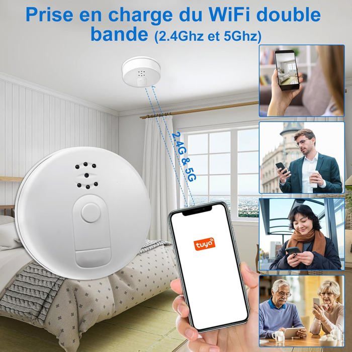 La caméra horloge LXMIMI prend en charge le passage de 12 à 24 heures et peut être réglée comme réveil pour vous rappeler de vous réveiller ou de faire du yoga (une seule fonction réveil). Caméra Espion WiFi, Caméra Espion Horloge De Bureau Intelligente 1080P... Caméra cachée wifi avec vision nocturne et détection de mouvement. Vision Nocturne Automatique La caméra espion wifi intègre une lumière LED infrarouge invisible, la caméra horloge dispose d'une vision nocturne automatique par défaut, cette fonctionnalité peut être désactivée dans l'application selon vos besoins., Bluetooth 4., 1 La caméra horloge est dotée de la fonction Bluetooth. Caméra WiFi Bluetooth Application Tuya Caméra Cachée Réveil LXMIMI 1080P HD WiFi Avec Vision Nocturne Et Détection De Mouvement - Appareil Photo Double Bande 2.4G/5G Bluetooth Horloge Bluetooth caméra wifi. Description du produit LXMIMI Version Améliorée de l'horloge Réveil avec Caméra Wifi, Compatible Bluetooth, Wifi et Fonction Réveil. La caméra WIFI Bluetooth de LXMIMI atteint la perfection grâce à l'innovation, la caméra-horloge améliorée offre une caméra WIFI 3-en-1 sophistiquée que vous adorerez. La mini-caméra wifi hd 1080p active automatiquement la fonction de vision nocturne en fonction de la lumière ; Après avoir activé la détection de mouvement intellectuel pour recevoir des alertes téléphoniques lorsqu'un mouvement est détecté Chaque clip dure 3 minutes et s'écrase automatiquement lors de l'enregistrement en boucle. Caméra Wifi 2,4/5 GHz Cette mini caméra wifi cachée prend en charge les routeurs wifi doubles, fonctionne avec le wifi 2,4 et 5 GHz, et se connecte rapidement à votre smartphone grâce à l'application. LXMIMI Caméra Wifi Multifonction avec Alerte de Détection de Mouvement et Enregistrement en Boucle. LXMIMI Caméra Wifi Multifonction avec Alerte de Détection de Mouvement et Enregistrement en Boucle. La caméra horloge LXMIMI prend en charge le passage de 12 à 24 heures et peut être réglée comme réveil pour vous rappeler de vous réveiller ou de faire du yoga (une seule fonction réveil La caméra horloge HD 1080p permet à plusieurs utilisateurs de visionner simultanément des vidéos en temps réel en ligne via l'application intelligente Tuya. Carte SD jusqu'à 256 Go (non incluse) ; Remarque : pour économiser de l'espace de stockage, les fichiers vidéo enregistrés sur la carte SD sont en 720P Horloge murale à caméra espion Full HD 1080P Wifi - Equipement Espion