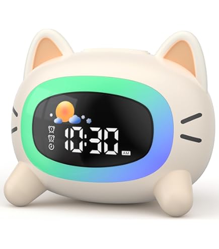 L'écran LCD de haute qualité affiche l'heure, la date et la température. Notre top 10 des Radio Reveil Chat au France - Juin 2025 Interrupteur : dans des conditions normales, appuyez sur le bouton « Down » pour changer. Réveil Snooze Fonction Veilleuse Réveil Luineux Nuérique Avec Chargeur Sans Fil, Enceinte Bluetooth Réveil Piles AG13 80mm Fonctionnement de la veilleuse : 4 piles AAA (non incluses) Lieux applicables : salon, bureau, bureau, chambre à coucher Caractéristiques : Choisissez entre 12 et 24 heures. Lorsque le nombre d'heures commence à clignoter, appuyez sur les touches « Up » et « Down » pour régler les heures. Réveil numérique enfants, réveil LED pour enfants 7 couleurs veilleuse... Ce réveil lumineux apprend non seulement à vos enfants quand il est temps d'aller au lit et de se réveiller, mais il grandit également avec la famille en les aidant à avoir plus de temps de sommeil et à apprendre l'indépendance aux enfants. Appuyez à nouveau sur « UP » pour démarrer la fonction snooze, puis appuyez sur le bouton « ALL », tout fermement. Les yeux du chat s’illuminent doucement pour un réveil en douceur, créant une veilleuse naturelle et rassurante. Les commandes sont intégrées de manière créative : oreilles pour régler le volume, museau tactile pour les fonctions principales, queue pour le mode snooze. Veilleuse, réveil, décoration... Appuyez sur les boutons « Up » et « Down » pour régler l'heure de l'alarme. Selon l'ordre des minutes, de l'année, du mois, du jour de la semaine. Annuler l'alarme : appuyez sur le bouton « SET » pour arrêter l'alarme: appuyez sur n'importe quelle touche sauf le bouton SET interrupteur 12/24 : dans des conditions normales, appuyez sur le bouton UP pour changer. Caractéristiques techniques : Type d'affichage : LED Matériau : plastique ABS Dimensions : 80 x 80 x 80 mm (3,1 x 3,1 x 3,1 pouces) Mouvement de l'horloge : 2 piles AG13 (incluses dans la livraison). Cadeau parfait pour les enfants : cadeau parfait pour vos enfants et votre famille, adapté pour Noël, anniversaire, festival et plus encore.