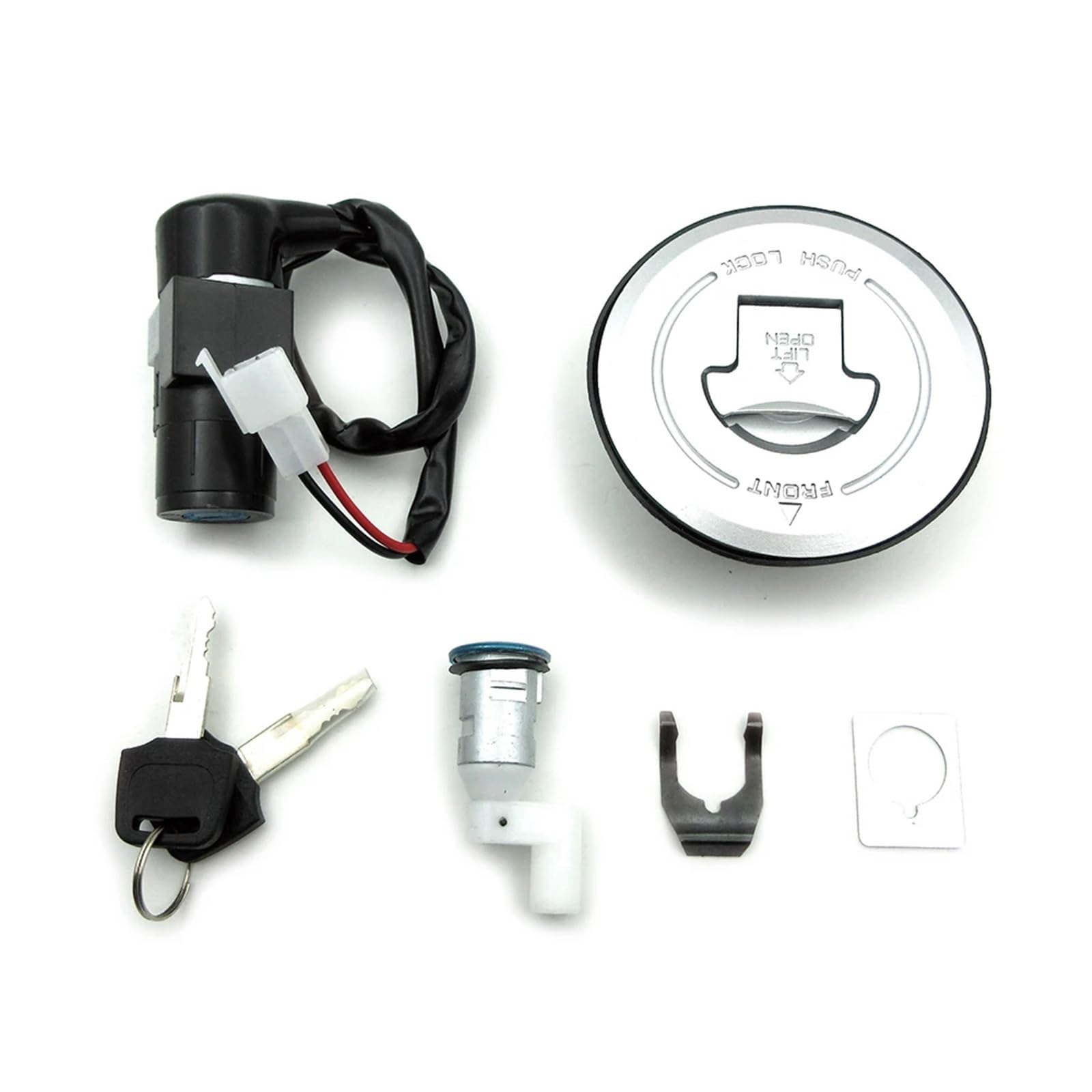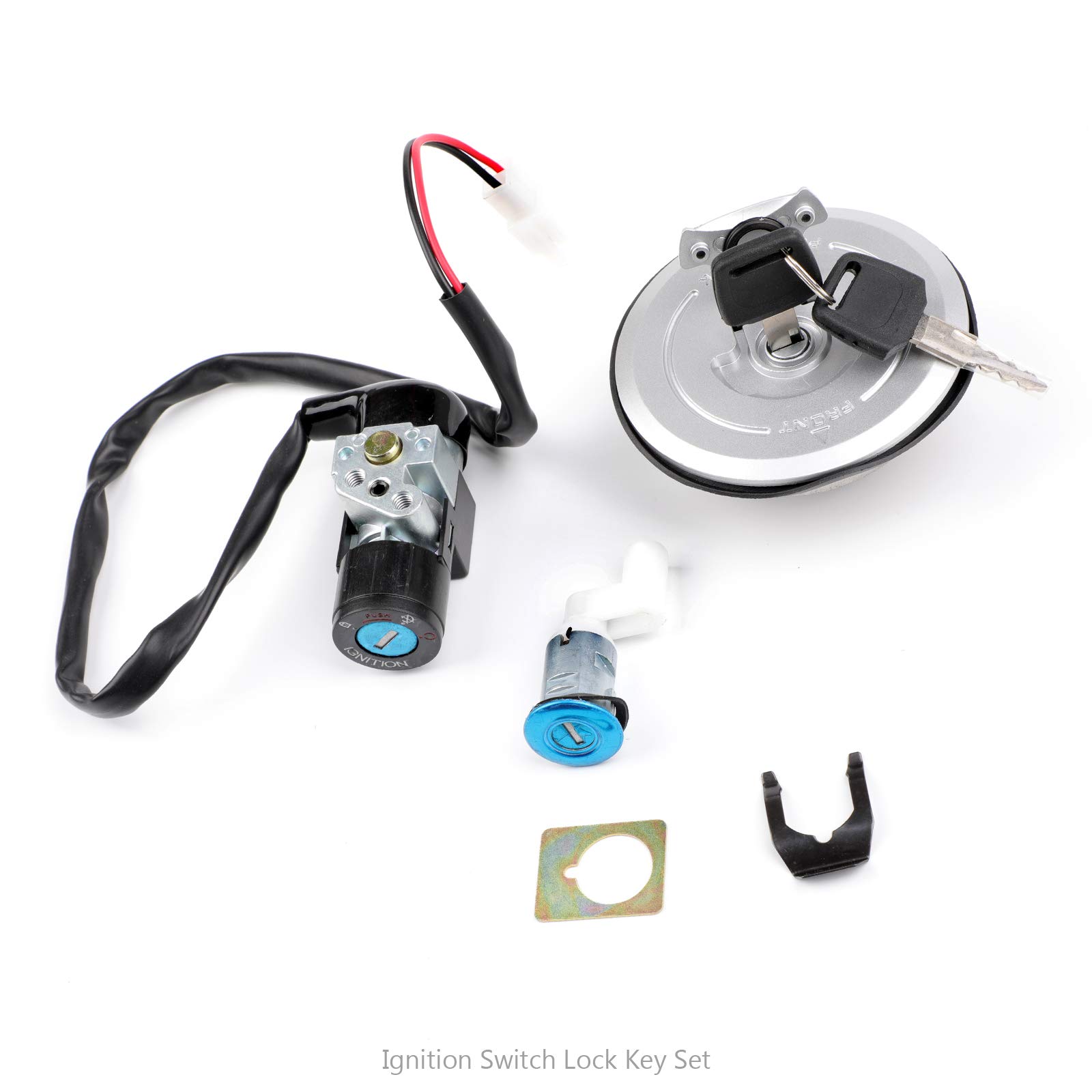 Kit Complet De Carénage Pour Motos CBR125R CBR125RR 2002 2003 2004 2005 Carénages Pour Honda CBR125R CBR125RR 125RR CBR125 R 2002 2003 2004... Serrure Allumage Honda CBR125 Serrure D'Allumage Moto Pour CBR125 2003-2007 CB125R R CBR 125 125cc Moto Interrupteur D'allumage Bouchon De Carburant Couvercle Serrures Accessoires Commutateur D'Allumage(Full Set Interrupteur Clé Moto Durable Ce contacteur de démarrage moto est simple d'utilisation. Très économique et pratique., 2., Il effectue une performance pour verrouiller votre moto ou votre VTT et assurer la sécurité du véhicule dans une certaine mesure., 3., Il est facile à installer avec des fils de liaison., 4., Il s'agit d'un ensemble d'interrupteur à clé d'allumage de rechange neuf et de haute qualité, qui peut être utilisé pendant une longue période., 5., Très durable. Convient pour Honda CBR125 CBR125R R CBR 125 125cc 2003-2007 Fabriqué en alliage de zinc de haute qualité et corps de verrouillage en plastique, assurant une résistance et une durabilité maximales pour une utilisation durable Modèles applicables :Pour CBR125 2003 2004 2005 2006 2007., Spécification:Matériau : aluminium + plastiqueDescription:1., Ce contacteur d'allumage est livré avec deux clés assorties, ce qui vous permet de préparer un jeu de rechange. Le forfait comprend :1 ensembleCe contacteur à clé assure la sécurité du véhicule. Pour CBR125 Pour CBR125R Pour CBR 125 125cc 2003-2007 Ensemble Clés Verrouillage Interrupteur D'allumage Moto Couvercle Bouchon Carburant Cet interrupteur à clé d'allumage est fabriqué en métal et en alliage d'aluminium pour plus de durabilité et de résistance aux hautes températures, ce qui en fait un choix fiable pour la serrure d'allumage de votre moto.