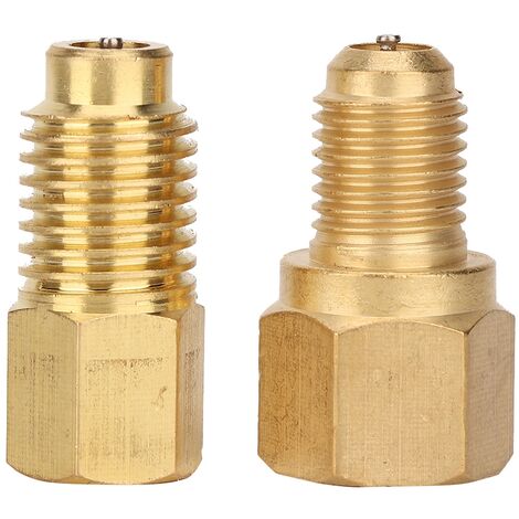 Liaison Frigorifique 1/4 3/8 Lot De 4 Adaptateurs Laiton Pour Kit Conversion R12 Vers R134a Lot De 3 Adaptateurs Pour Conversion R134A, Filetage SAE 1/4" Pour LP Convertisseur Climatisation Auto Pour W21.8 à 1/4'' SAE. * Pour convertir R12 vers R134a, LP et pour connexion HP. Caractéristiques : *Matériau : laiton. Couleur Construction robuste : construction solide et structure ergonomique, haute performance pendant le travail. Cikonielf Filetage SAE Vanne d'arrêt manuelle droite en laiton 1/4po... Contenu de l'emballage : le paquet contient 3 adaptateurs, y compris un adaptateur de bouteille sur filetage SAE de 6,35 mm, un adaptateur filetage interne SAE de 6,35 mm – une connexion de climatisation du véhicule et un adaptateur de filetage intérieur de 6,35 mm (tous avec joint). Compatibilité polyvalente : conçu pour W8 vers SAE 6,35 mm, cet ensemble d'adaptateurs peut être utilisé pour convertir R12 en R134a, LP et connexion.