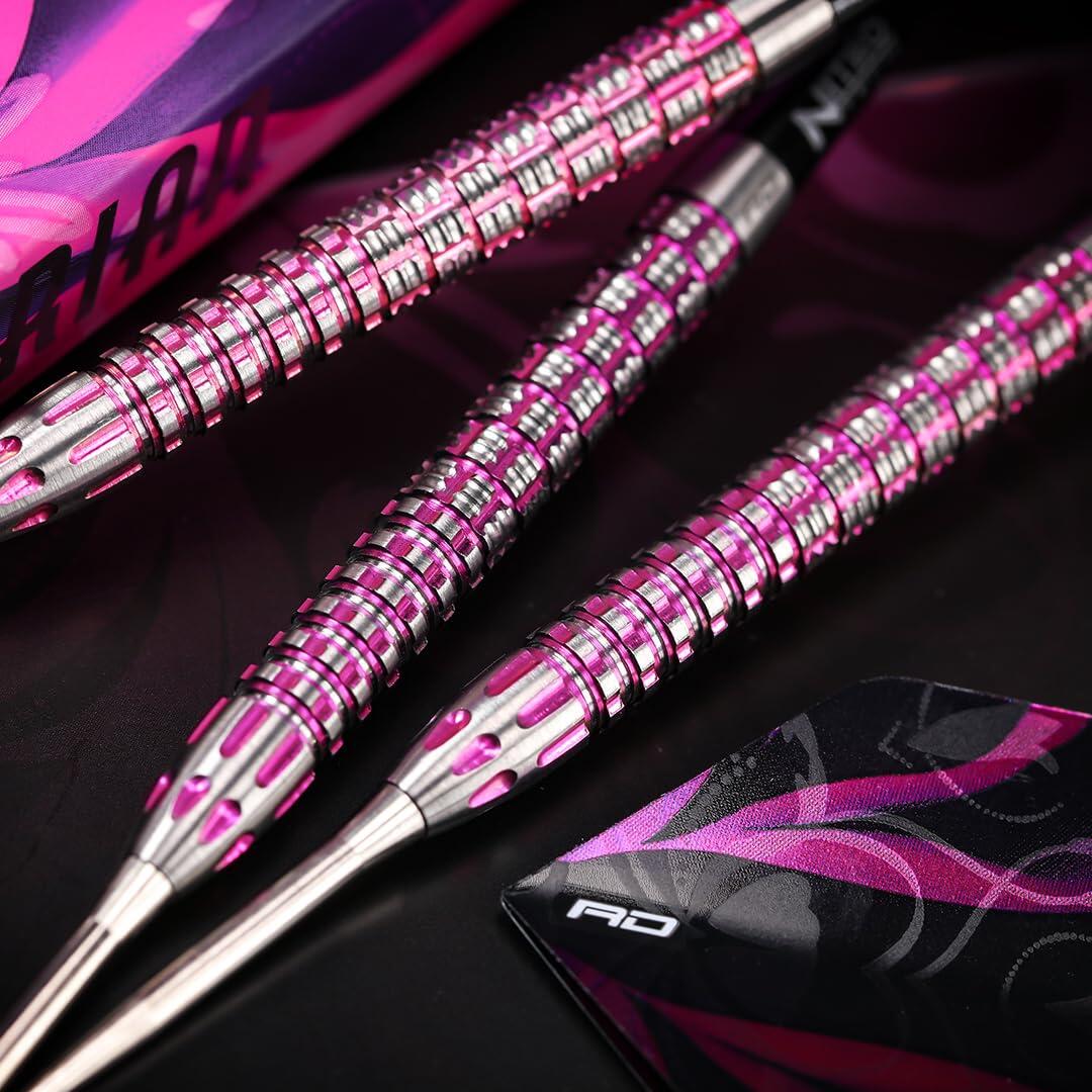 Red Dragon Paradym Gold Parallel 90% - Fléchette Professionnel La teneur élevée en tungstène garantit également une durabilité accrue, rendant ces fléchettes suffisamment résistantes pour un usage quotidien, que ce soit pour l’entraînement ou la compétition. Fléchettes Ailettes épaisses Tiges Courtes RED DRAGON Darts – Tyrian Série - 90% Tungstène Jeu De Fléchettes Professionnel Avec 90 % de tungstène, les fléchettes de la série Tyrian offrent un fût dense et élégant qui améliore l’aérodynamisme et la stabilité, permettant une trajectoire de vol plus fluide et mieux contrôlée. Fléchettes - RED DRAGON - Fusion - 24g - Tungstène - Ailettes et Tiges... Les Fléchettes RED DRAGON - Série Tyrian sont l'outil ultime pour les joueurs recherchant précision, constance et performance sur la cible. Fabriqué avec des fûts en tungstène à 90 %, cet ensemble de fléchettes professionnelles est conçu pour offrir un équilibre et un contrôle supérieurs, ce qui en fait le choix parfait pour les... Prise et Contrôle Supérieurs : Dotée d’un grip avancé en forme de boulon pour une prise en main sécurisée et confortable, améliorant votre contrôle et permettant une libération fluide pour des lancers plus précis et exacts. Conçue pour les cibles traditionnelles et électroniques, la série inclut des options avec pointes en acier et pointes en plastique, offrant une polyvalence pour toutes les situations. Ailettes Extra-Épaisses Premium : Les ailettes durables et épaisses conservent leur forme plus longtemps, améliorant la stabilité et l’aérodynamique de la fléchette, garantissant une trajectoire cohérente à chaque lancer. Fabriqué avec des fûts en tungstène à 90 %, cet ensemble de fléchettes professionnelles est conçu pour offrir un équilibre et un contrôle supérieurs, ce qui en fait le choix parfait pour les joueurs sérieux souhaitant élever leur niveau de jeu. Le grip sur le fût assure une sensation tactile sécurisée, améliorant votre prise en main et votre contrôle pour une libération fluide et constante à chaque lancer. Les Fléchettes RED DRAGON – Série Tyrian sont l’outil ultime pour les joueurs recherchant précision, constance et performance sur la cible.