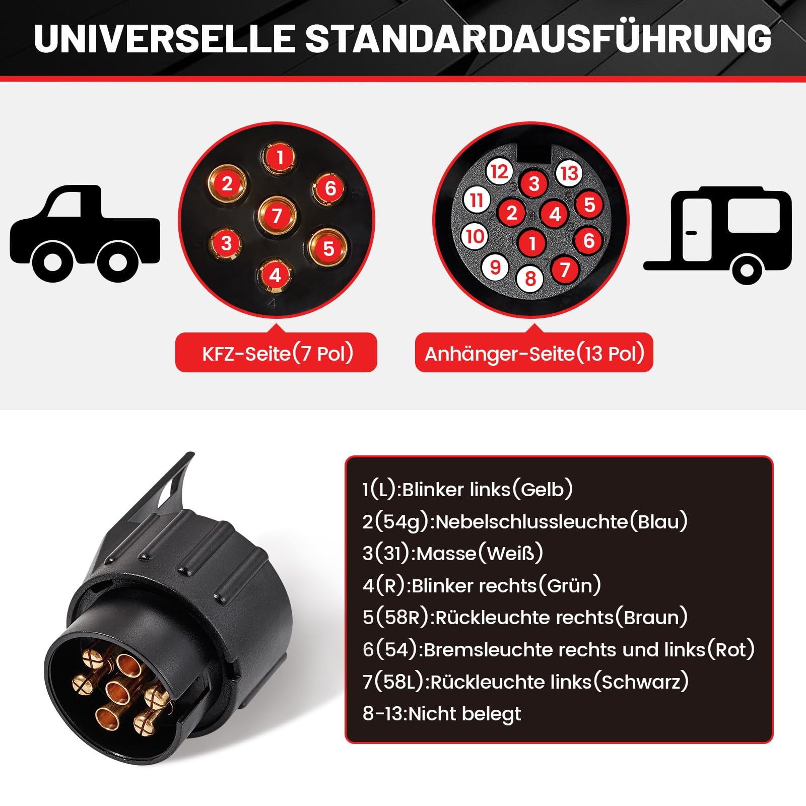 RED WOLF Adaptateur de faisceau de câblage ISO 16 broches pour... 【Notre service】RED WOLF propose également une prise de remorque à 3 broches, une prise de remorque à 7 broches et une prise de remorque à 13 broches et un adaptateur de remorque 13 vers 7 broches. Si vous avez des questions, nous sommes à votre disposition par e-mail : support_eu@redwolfacc., com. Porte Moto Attelage RED WOLF 13 Broches - Accessoire D'attelage De Remorque Adaptateur Prise Remorque 【Large compatibilité】 L'attelage de remorque 7 sur 13 est adapté pour les remorques de norme européenne, caravane, attelage de remorque, camping-car, camping-car avec filet de bord 12 V. Fonction : votre voiture (13 broches) sur remorque (7 broches). Adaptateur de remorque - 13 vers 7 broches. Universel : si votre voiture a une prise 13 broches et que la remorque a une prise à 7 broches, l'adaptateur de remorque convient. Convient pour les remorques, les porte-vélos, etc Adaptateur de remorque 7 à 13 broches : adaptateur RED WOLF 7 vers 13 broches sert à connecter électriquement un véhicule à une remorque de train. RED WOLF 3 Tasten Autoschlüssel Gehäuse für VW MK6 Golf Polo Tiguan