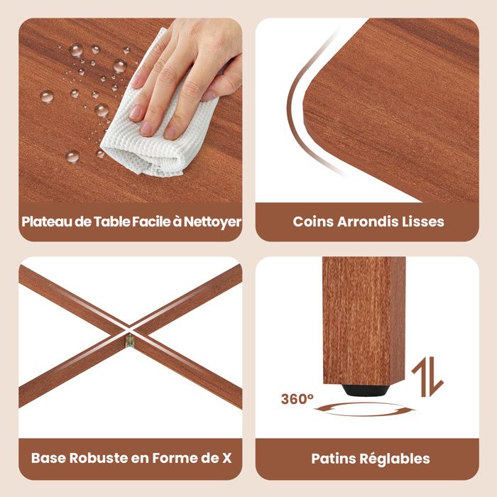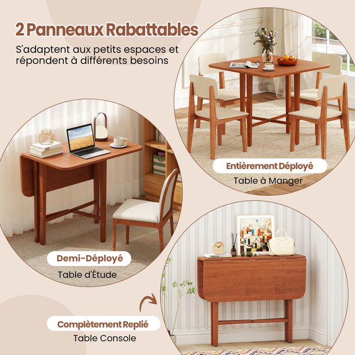 de 80 kg Base robuste en forme de X renforce la stabilité générale Équipée de patins de pieds ajustables pour éviter le vacillement Plateau imperméable facile à nettoyer avec un grain de bois rustique Table à manger pliante pour petit espace, bureau, restaurant Spécifications techniques : Couleur : Noyer Matériau : Bois de Caoutchouc, MDF Dimensions du Produit : 90 x 90 x 74,5 cm (L x l x H) Taille Complètement Pliée : 90 x 25,5 x 74,5 cm (L x l x H) Capacité de Poids : 80 kg Poids Net : 16 kg Contenu de la livraison : 1 x Table à Manger Pliante en Bois 1 x Manuel d’Utilisation Table basse noire de 70 cm (27,6 pouces), table à manger de style moderne du milieu du siècle, convenant à 2-4 personnes, dotée d'un plateau rond . Vendu par... STABILITÉ OPTIMALE : Le cadre en X renforce la stabilité de la table à manger pliable, tandis que les pieds réglables assurent son équilibre même sur un sol irrégulier, sans glissement. De plus, la table est dotée d'un cadre renforcé en forme de X qui est non seulement esthétiquement plaisant mais qui améliore également la stabilité. Table Pliante Pieds Caoutchouc Massif RELAX4LIFE Table à Manger Pliante Pour 2-4 Personnes, Table Couleur Noyer CONSTRUCTION ROBUSTE : La structure en bois d’hévéa garantit une excellente solidité et une capacité de charge allant jusqu’à 80 kg. Description du produit : La table à manger pliante est un choix polyvalent et économique pour votre pièce. Dépliez-la entièrement pour recevoir à manger, dépliez un seul côté pour en faire un bureau, ou repliez-la complètement pour une utilisation en console, gain de place assuré. MONTAGE SIMPLE & DIMENSIONS : Le montage de la table à manger rabattable est rapide et intuitif grâce à une structure bien pensée et des instructions claires. Dimensions ouvertes : 90x90x74,5 cm. Fabriquée avec des pieds en bois de caoutchouc naturel, notre table cuisine pliable est conçue pour durer. En dehors de ses fonctionnalités pratiques, notre table à manger noyer ajoute une touche rustique à n'importe quel espace avec son beau grain de bois. Le plateau spacieux de 120 cm offre un grand espace pour les repas, tandis que les 2 étagères et le tiroir permettent de garder les essentiels organisés. Fabriquée à partir de panneaux de particule de qualité, cette table à manger extensible allie un aspect élégant à une utilisation durable Par exemple, elle peut être complètement pliée en tant que console ou à moitié déployée en tant que bureau d'étude. Conçue pour accueillir confortablement 2 à 4 personnes. Table De Salle à Manger Pliable, Table De Cuisine Extensible Bureau Pour 2 A 4 Personnes Rectangulaire Avec Abattants Noir Boise Et Noir Encre 93306310