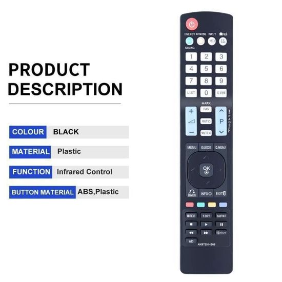 Zemheri Hey RM-L930+1 Küçük Kalıp Lg Smart LCD LED Tv Fiyatı ❤【Télécommande LG Parfaite】: Compatible avec toutes les télécommandes LG. Telecommande TV LG 3D LCD REMPLACEMENT DE TÉLÉCOMMANDE LED Smart Freeview 3D TV Du Téléviseur Pour LG TV EUR 4,56 Telecommande LG Assurez-vous qu'il n'y a pas d'obstacle entre la télécommande et le lecteur qui bloque la transmission du signal. Télécoande de Replaceent pour LG AKB73615501 Télécommande de rechange AKB72914209 pour TV LG 42PJ350 50PJ650 50PK250... ❤【Facile à Saisir】: Un design léger et ergonomique le rend très confortable. Correspond à 100% avec tous les téléviseurs LG, en remplacement des télécommandes anciennes ou défectueuses. La télécommande est facile à saisir et difficile à faire glisser. C'est idéal lorsque la télécommande d'origine est perdue, endommagée ou nécessite une nouvelle télécommande., Compatible à 3., 100% avec la plupart des modèles de la série de téléviseurs LG., 4., La télécommande utilise la technologie infrarouge. C'est idéal pour votre télécommande d'origine. StarlianTracker téléviseur télécommande Il convient pour le contrôleur universel LG intelligente AKB72914293 AKB72914209 AKB72915207 C’est le remplacement idéal pour la télécommande LG Smart TV, pas besoin d’installation, il suffit de brancher la batterie pour commencer, 100% compatible avec les modèles de téléviseurs LG: 42LD550,/46LD550 /52LD550UB/42LE7300/47LD420/32LD450/37LD450/42LD450/ 47LD630/47LD520/55LD630/ 55LD650UA/52LD550/ 42LD550/ 42LD550/42LD550/42LD550/ 42LD550/42LD550/ 42LD550/ 42LD550/ 42LD550/42LD550 /47LE7300 Spécifications: Poids du colis: env 90 grammes Taille: 21., 8 * 5., 0 * 2., 2 cm Matériau: ABS Fréquence: 433 MHz Portée de la télécommande: environ 10 mètres Batterie requise: AAA x 2 (Non inclus) Fonction de télécommande de remplacement pour téléviseur LG: 1., Ceci est une nouvelle télécommande de remplacement LG, pas la télécommande d'origine, qui couvre toutes les fonctionnalités de la télécommande d'origine., 2., La conception légère et ergonomique le rend très confortable.