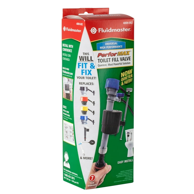 FLUIDMASTER 400CR VANNE de remplissage universelle de toilette et kit... Facile à installer, instructions étape par étape incluses (français non garanti) Les produits internationaux ont des conditions distinctes, sont vendus depuis l'étranger et peuvent différer des produits locaux, notamment en ce qui concerne l'ajustement, la classification par âge et la langue du produit, de l'étiquetage ou des instructions. Vanne De Remplissage Toilettes Fluidmaster VANNE DE REMPLISSAGE Universelle Vanne Flottante Lavabo Vanne De Pièce Plomberie Réparation Chasse D'eau Réparez les valves de remplissage bruyantes ou lentes avec la valve de remplissage des toilettes la plus silencieuse et la plus puissante disponible Avis clients · Facilité d'utilisation (4,3/5) · Rapport qualité / prix (4,3/5) · Performance (4,5/5) · Simplicité d'entretien (4,3/5 Fluidmaster 400H-002 Performax Vanne de remplissage universelle pour toilettes haute performance Réservoir et cuvette Contrôle de l'eau, Multi Fluidmaster 400h-002 Performax Válvula De Llenado Para Inodoro Fluidmaster 400H-002 - Universal Y Silenciosa Descargador Cisterna Roca
