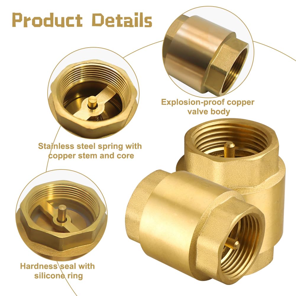 Lot 2 Clapets Anti-retour CLAPET ANTI-RETOUR CLAPET Anti-retour Laiton Avec Filetage Intérieur Clapet Chauffe-eau Machine à Laver Clapet anti-retour en laiton | Vanne à flotteur unidirectionnel Lot de 2 clapets anti-retour pour copresseur d'air - Clapet anti... Caractéristiques du produit : Matériel: laiton Couleur : or Taille du filetage : 3/4 pouce Contenu de l'emballage : 2 clapets anti-retour 3/4 Cela garantit une installation facile et sans tracas dans différents systèmes. Installation facile : ce clapet anti-retour a une structure simple et est facile à installer. Fonctionnalités : 1., Clapets anti-retour en laiton de haute qualité, résistants aux hautes températures et à la corrosion, avec filetage intérieur et extérieur pour une bonne étanchéité., 2., Clapet anti-retour pour eaux usées - Ajustement serré - Prévention efficace des fuites et solution complète du problème de refoulement., 3., Le clapet anti-retour de 3/4 est facile à installer, polyvalent, clapet anti-retour pour pompes de jardin, fontaines, machines à laver et autres systèmes de tuyaux avec filetage extérieur de 3/4. Filetage de précision qui peut empêcher efficacement les fuites. Il empêche la pompe de sécher lors de l'arrêt et assure un fonctionnement constant. Large gamme d'applications : résiste aux températures élevées et basses et convient pour les pompes de jardin, les fontaines de saut, les eaux usées des machines à laver et d'autres systèmes de tuyauterie, ce qui permet d'éviter efficacement les problèmes de refoulement. Matériaux des clapets anti retour expliqués