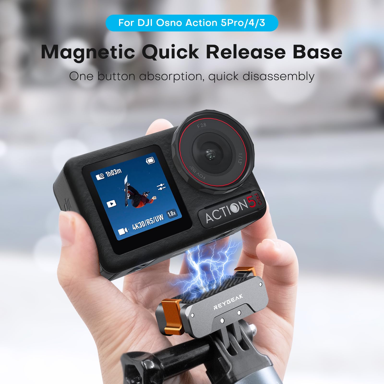 Adaptateur Magnétique Double Griffe REYGEAK Support Magnétique Double Direction En Aluminium à Support Magnétique Puissant Il vous permet de fixer votre action cam sur tous accessoires disposant d'une fixation. Ce support adopte une conception magnétique à dégagement rapide avec un clip de positionnement. Vous pourrez donc le monter sur une perche à selfie, une fixation tête, corps etc Plaque à dégagement rapide étendue SmallRig 3031 pour DJI RS 2 offrant une grande flexibilité lors de la prise de vue. SKYJFFJ Support de tête de casque Gopro rotatif à 360 °, clip de boucle à dégageent rapide... Démontage et utilisation faciles : appuyez sur les boutons de déverrouillage aux deux extrémités en même temps pour obtenir un démontage sans effort, ce qui rend la prise de vue plus agréable et vous n'avez aucun regret lors de la prise de vue et de la création. Interface combinée polyvalente : le support à dégagement rapide est une combinaison d'une base de vis de 1/4 et d'une interface à double griffe. C'est un adaptateur idéal pour le support de base de caméra DJI Action 6/OSMO Nano, largement compatible avec les perches à selfie, les poignées, les trépieds, etc. Livré avec un coussinet en silicone pour réduire la friction entre l'appareil photo et la base tout en réduisant les légères vibrations.
