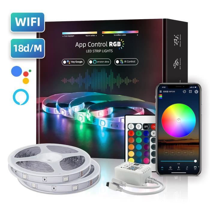 LED Chambre 15M, Ruban LED App Contrôle, Multicolore Bande LED avec Les ruban Led Bluetooth supportent la télécommande IR et le contrôle APP. L'APP a de nombreuses fonctions, vous pouvez librement régler la luminosité, la couleur, le mode et la fonction de synchronisation, profitez des bande de led intelligentes. [Lumières LED conviviales]1 Rouleau de lumières LED, avec... Bande Led Ruban LED, LED Chambre, RGB , Multicolore App Contrôle, Ruban Bandeau Led Ruban Led 15m, Led Chambre, RGB Bande Led Contrôlé par APP Bluetooth ou Télécommande 44 Touches, Synchroniser avec Rythme de Musique, Bandeau Led pour Chambre, Bar, Cuisine, Mariage, Fête Moyens de contrôle conviviaux : 2 façons de contrôler : (1)Téléchargez l'application pour régler les couleurs de la lumière, la luminosité et le réglage de la synchronisation. Ruban LED WiFi 15M Lumineuse avec Télécommande 44 Touches RGB contrôlée... Largement utilisé : Les bandes lumineuses à LED RGB sont un ornement de maison approprié, transforment votre maison, votre cuisine, votre plafond, l'arrière de la télévision, le bureau, les escaliers, le bar et plus encore avec des lumières changeantes de couleur. (2)Livré avec une télécommande infrarouge pour que vous puissiez régler les lumières plus facilement. Un simple réglage sur votre téléphone vous permet de profiter d’une vie plus pratique. Micro haute sensibilité intégré, les lumières dansent au son ambiant.
