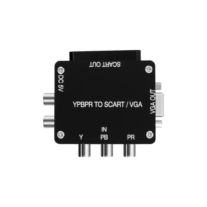 Ce produit prend en charge le signal composante de différence de couleur YPBPR (YVU) vers RGBS (SCART) et VGA, qui peut être utilisé dans les consoles de jeux, les décodeurs, les DVD et autres équipements avec sortie YPBPR , Entrée micro-USB 5V Convertisseur 480p 720p 1080p YUV Vers RGBS YPBPR Vers SCART YPBPR Vers VGA Component Transcoder Converte6100 Adaptateur Vga Composant Conversor De Componentes Yuv Para Rgbs Ypbpr Para Scart Ypbp | Parcelamento sem juros JANZU couleur :NoirMatériel :plastiqueContenu de l'emballage :1 x convertisseurSeul le paquet ci-dessus, les autres produits ne sont pas inclus. Ce produit prend en charge le signal composante de différence de couleur YPBPR (YVU) vers RGBS (SCART) et VGA, qui peut être utilisé dans les consoles de jeux, les décodeurs, les DVD et autres équipements avec sortie YPBPR Ce produit prend en charge le signal composante de... Composant de différence de couleur d'entrée YPBPR (YUV); Sortie RGBS (SCART), VGA (RGBHV) L'erreur de mesure permis est de +/- 1-3 cm.