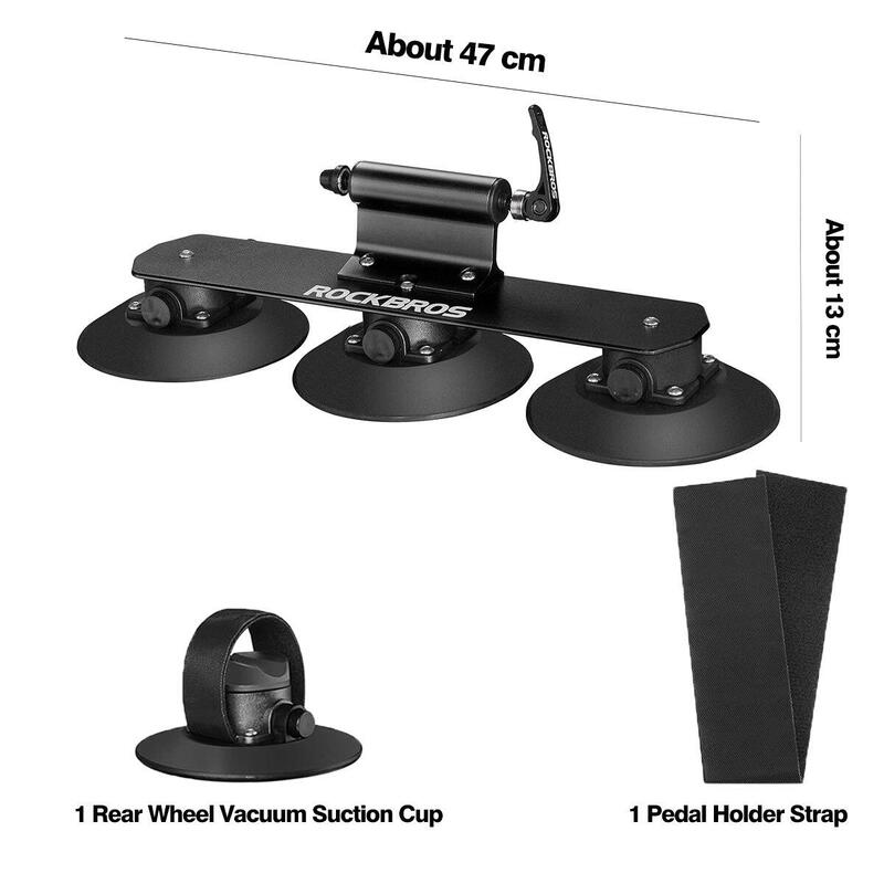La version électrique permet un gain de temps et d'effort, avec une aspiration automatique assurant une fixation rapide et sécurisée. ROCKBROS Porte-vélos de Toit à Ventouse Electrique pour 1-3 Pour plus de détails sur les accessoires (ex. Accessoire Voiture Transport Vélo Sécurisé ROCKBROS Porte-vélos Pour Toit De Voiture Montage Rapide Avec Ventouse Pour 1 à 3 Vélos Porte Vélo électrique Elles adhèrent fermement aux toits de voiture plats et durcis sans endommager la peinture — assurant une fixation stable même à grande vitesse Remarque : l’utilisation au-delà de 3500 m d’altitude n’est pas recommandée UNIVERSEL : Ce porte-vélos à ventouses est compatible avec de nombreux véhicules, tels que les berlines, les coupés, les compactes, les SUV... Pour toute question, notre service client est à votre disposition 【RANGEMENT PRATIQUE】 Une boîte de transport robuste et résistante à l’usure est incluse pour ranger le porte-vélo et tous ses accessoires. Oreiller de Bain, Oreiller de Bain pour Baignoire, avec 2 ventouses... Remarque : chaque porte-vélo est conçu pour un vélo. Remarque : l’alarme de pression est incluse uniquement avec la version électrique Une bande velcro protège le pédalier et évite les rayures sur le toit du véhicule. Fabricant : ROCKBROS Numéro de modèle : 5021001/ Pays d’origine : Chine Couleur : Noir Matériaux : Alliage d’aluminium + ABS + Nylon + TPU Convient pour : 1 / 2 vélos Dimensions : 50210013001 : 35 × 32 × 14,5 cm 50210015001 : 37 × 16 × 14 cm 50210016001 : 26 × 16 × 14 cm Poids : 50210013001 : 3,3 kg 50210015001 : 2,3 kg 50210016001 : 2,2 kgInstallation : avec ventouses à vide électriques / manuelles Astuce : lisez attentivement le manuel avant installation.