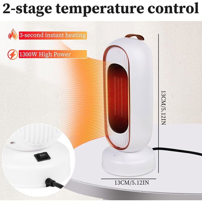 Il s'intègre à les intérieurs pour des solutions de chauffage pratiques et immédiates. Ventilateur Chauffant 2 Modes Radiateur Électrique 3500 W Chauffage Puissant Pour Intérieur Chauffage D'appoint 2 Modes Oscillation La fonctionnalité à deux modes garantit un chauffage rapide adapté à vos besoins, tandis que la rotation à 360 degrés une répartition uniforme de la chaleur pour un confort maximal. Le ventilateur possède 2 vitesses (Lent / Rapide) pour profiter d'une température idéale. Léger et portatif, le chauffage MOLINO se branche partout ! Pratique : la télécommande incluse vous permet de contrôler à distance le chauffage ! Réglez la vitesse, la température et durée de fonctionnement sans bouger de votre canapé En raison de différentes mesures manuelles, veuillez permettre une différence de taille de 1 à 2 cm. Utilisation efficiente de l'énergie : Doté d'un thermostat haute sensibilité et de réglages de puissance adaptables, ce radiateur portable garantit une consommation électrique minimale, aidant à réduire le gaspillage énergétique ; bénéficiez d'une chaleur constante adaptée à vos besoins, que vous lisiez près de la fenêtre ou receviez des invités par temps froid. Chaleur Directionnelle Constante: Grâce à ses deux modes d'utilisation, ce chauffage délivre une chaleur directionnelle précise en intérieur et en extérieur. Le... Caractéristiques:Matériel: PPTaille du produit: environ 27,7x21x16., 1cm / 10., 91x8., 27x6., 34 poucesPoids: 523 gTension de notation: 220 VFréquence de notation: 50 HzPuissance: 500 WPlage de puissance: 1/2Liste de colisage:1 * radiateur d'espaceNote:En raison de différents paramètres d'éclairage et d'écran, la couleur de l'élément peut être légèrement différente de l'image. Un fonctionnement économe en énergie le rend idéal pour une utilisation hivernale dans le salon, la chambre, les dortoirs ou lors de voyages. Diffusion de Chaleur Homogène: Utilisant une oscillation 360 et un réglage d'angle manuel, ce radiateur d'intérieur une distribution thermique uniforme et élimine efficacement les zones froides. Chauffage d'appoint 500 W, chauffage d'appoint électrique à prise Compact et fiable, ce chauffage est parfait pour une utilisation sur bureau à l'intérieur comme à l'extérieur, offrant une chaleur constante là où vous en avez le plus besoin. Adaptabilité Multi-Usage: Ce radiateur portable fonctionne par simple branchement, avec un design polyvalent pour un transport facile.