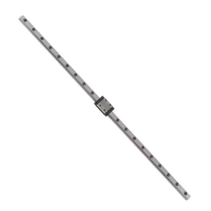 Guide Linéaire 200mm Avec 2 Blocs MGN9H Pour Imprimante 3D CNC Les guidages à rail profilé de haute précision (guidages monorail à rouleaux ou à billes) sont utilisés par dans le monde entier dans le domaine de la construction mécanique pour un large éventail d'applications : des tâches de manutention simples jusqu’aux processus d’usinage lourds Guide Linéaire Imprimante 3d Roulements De Rails Linéaires, Mini Rail De Guidage Linéaire Curseur Linéaire Mouvement Fluide Matériau : Acier à roulement Filetage du curseur : M3 Rail Guidage Linéaire Acier Haute Précision Bloc de Guidage 100/200/300... Largeur du rail : env., 9 mm / 0,35 pouces Design spécial : il y a 2 bandes anti-chute de chaque côté du bloc, ce qui réduit la situation où le bloc de chariot est coincé pendant l'expédition, et réduit le bruit lorsque le bloc de chariot fonctionne sur le rail de guidage. Utilisation : le rail de guidage linéaire est de petite taille et léger, particulièrement adapté aux petits équipements ; largement utilisé dans les équipements de fabrication de semi-conducteurs, les cartes de circuits imprimés, les équipements d'assemblage de circuits intégrés, les bras robotiques, les machines de mesure de précision et autres petits équipements à mouvement linéaire. Ce mini guide de rail linéaire est fabriqué à partir d'un matériau en acier à roulement de qualité supérieure, robuste et