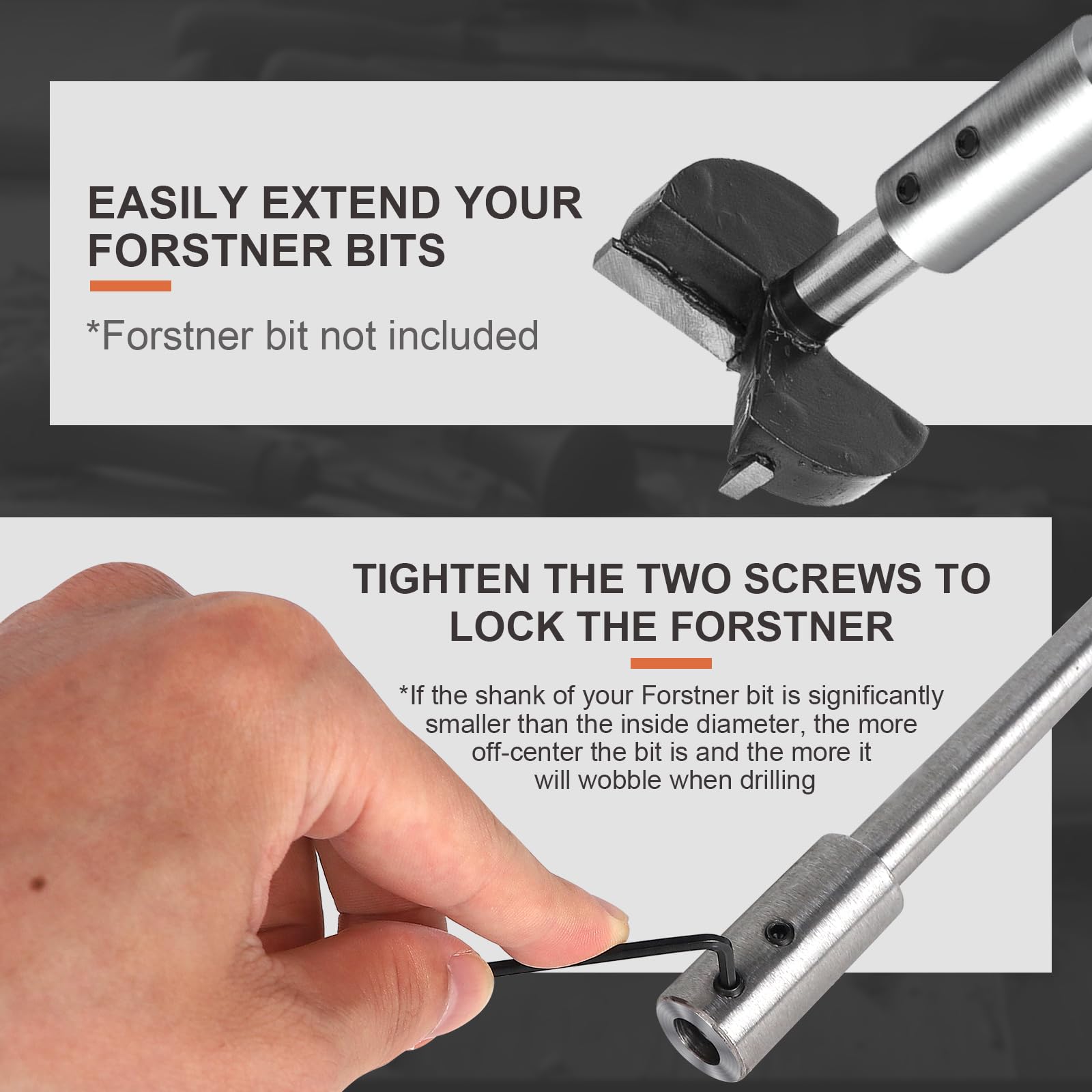 Rallonge Foret - Forets À Tige Hexagonale ENSEMBLE DOUBLE LONGUEUR POUR UNE APPLICATION POLYVALENTE : Contient une rallonge de 254 mm (10 pouces) et une de 178 mm (7 pouces), idéales pour ajuster la profondeur de perçage lors de l'assemblage de meubles, de l'installation de passages de tuyaux ou de la fabrication de conteneurs en bois. Rallonge Pour Forstner LPZMPZ 169 MM Extension De Foret Rallonge De Perceuse Rallonge De Meche Forstner, Pour Foret Forstner Avec Tige De 3/8", Avec Clé Hexagonale En Forme De L Rallonge Mèche Foret ACIER HAUTE RÉSISTANCE : La rallonge de foret est fabriquée en acier au carbone massif, pour garantir des performances élevées dans toutes les applications de menuiserie Rallonge pour mèche forstner FISCH Queues de rallonge pour mèches Forstner ultraperformantes - Lee Valley... APPLICATION POLYVALENTE : Cette rallonge de perceuse est idéale pour les bricoleurs et les professionnels qui souhaitent percer des trous profonds et nets dans le bois, le MDF ou d'autres matériaux similaires. Insérez simplement le foret, serrez les vis et commencez à travailler avec un minimum de vibrations. Idéale pour les projets nécessitant un perçage précis et une plus grande portée Vous pouvez choisir les spécifications appropriées en fonction de vos besoins pour un fonctionnement plus pratique et efficace., 3., Cette tige d'extension a un diamètre intérieur de 9,5 mm (3/8 po) et une faible tolérance, ce qui la rend parfaitement adaptée à la plupart des forets Forstner courants. La surface plate de la tige empêche la torsion du mandrin 【Produit Description】 1., Structure en acier au carbone, rectifiée et polie avec précision pour une robustesse à long terme., 2., 1 tige d'extension de 254 mm + 1 tige d'extension de 178 mm + 2 clés Allen.