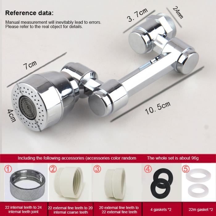Parfait pour tout évier. Rotatif 720° Robinet Tête de Pulvérisateur, Madagascar La fixation stable empêche les chutes et le montage facile permet d'économiser du temps et des efforts. Tête Pulvérisation Robinet Rotative 720 Rallonge De Robinet Rotative à 1440° Avec Pulvérisation Double Mode, Fixation De Robinet Anti-éclaboussures Pour évier De Cuisine Et Salle De Bain, Modèle Universel Avec Bras Robotique, Aérateur De Réducteur éclaboussures Facile Installation Avec l'installation pratique, vous pouvez facilement pulvériser de l'eau à votre angle préféré avec le design multi-mode. Spécification : Nom du produit : robinet de cuisine tête de pulvérisation Matériau : cuivre, ABS Couleur : argenté. Tête de pulvérisation rotative en plastique 1080 ° extension de robinet filtre anti... Il s'adapte à la plupart des modèles de robinets et dispose de deux modes de débit d'eau qui empêchent l'eau d'éclabousser hors de la sortie du bassin et d'économiser à la fois l'eau et l'argent. Veuillez noter qu'en raison des différentes mesures manuelles, il peut y avoir une erreur de 1 à 2 cm. 1) Éclaboussure d'eau avec buse anti-éclaboussures – Vous avez marqué des éclaboussures d'eau partout où vous lavez des plats ou des légumes ? Cette tête de pulvérisation dispose d'un bubbler et d'un diffuseur qui aère le flux d'eau, fournissant un flux doux et concentré qui reste dans l'évier et garde votre comptoir de cuisine au... Remarque : En raison des différences d'éclairage et d'écran, la couleur réelle de l'article peut être légèrement différente de celle de la photo. Type : sortie d'eau à 2 portions de 7 caractères (pour lavabo), sortie d'eau à 2 rouleaux de 7 caractères (pour évier de cuisine) Dimensions : comme sur la photo. Avantages : facile à installer et à enlever les têtes de pulvérisation de robinet sans avoir besoin de compétences sanitaires ou d'outils spéciaux. Robinet de Cuisine Tête de Pulvérisation, Tête de Robinet d'Évier de Cuisine | Tête de Pulvérisation Économe en Eau, Filtre à Eau Rotatif à 720 Degrés, Apport de Pulvérisation de Robinet Filtre Anti-éclaboussures, Accessoires de Salle de Bain de Cuisine Mettez à jour votre évier avec notre tête de pulvérisation de robinet résistante à l'érosion. Convient à une variété d'utilisations : mettez à jour votre lavabo avec une tête de pulvérisation de robinet qui répond confortablement aux différents besoins de tout type de lavabo ou d'évier.