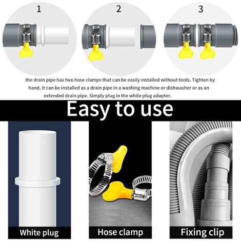 Il peut résister à la flexion sans se fissurer ou fuir, assurant un drainage efficace. Caractéristiques : * Nom du produit : tuyau de vidange., *Matériau : PVC. Rallonge De Tuyau De Robinet Rallonge De Tuyau De Vidange Robuste Pour Accessoires De Robinet Rallonge Blanche 3m Vidange Machine a Laver,Rallonge de Tuyau de Vidange Universel,Tuyau... Contenu de l'emballage : 1 x tuyau., 1 collier de serrage. Il est facile à installer, ce qui le rend pratique pour les utilisateurs. Il peut être coupé à la longueur désirée et ses joints flexibles offrent une bonne élasticité et assurent une étanchéité sûre sans aucune fuite d'eau. Cela permet une personnalisation facile et une adaptabilité aux différentes exigences d'installation. Il est conçu pour résister à une utilisation régulière sans s'user facilement, offrant une fonctionnalité fiable. * Capacité de flexion et de traction supérieure : le tuyau de vidange est conçu avec une capacité de flexion et de traction supérieure, permettant une flexibilité tout en conservant sa résistance. Il empêche efficacement les fuites d'eau et assure un processus de drainage de l'eau en douceur. * Réglable et flexible : le tuyau d'évacuation d'eau de grand diamètre peut être facilement connecté à des tuyaux allant de 15 à 25 mm. Réglable et flexible : le tuyau de sortie d'eau de grand diamètre peut être facilement connecté à des tuyaux allant de 15 à 25 mm. Il peut être coupé à la longueur désirée et ses joints flexibles offrent une bonne élasticité et assurent une étanchéité sûre sans aucune fuite d'eau 【Capacité de flexion et de traction supérieure】Le tuyau de vidange est conçu avec une capacité de flexion et de traction supérieure, permettant une flexibilité et une facilité d'installation tout en conservant sa résistance. Réglable et flexible : le tuyau de sortie d'eau de grand diamètre peut être facilement connecté à des tuyaux allant de 15 à 25 mm. *Utilisation polyvalente : ce tuyau de vidange extensible pour climatiseur est parfait pour évacuer l'eau sans tracas dans divers paramètres tels que les climatiseurs, les machines à laver et les robinets de cuisine. TMISHION Tuyau de Vidange Tuyau d'Eau Vidange Flexible Rétractable