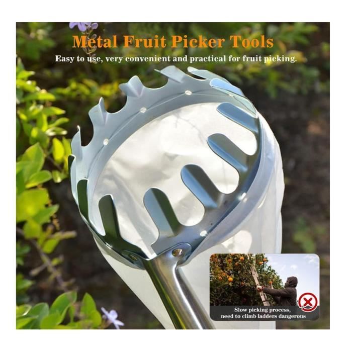 Outil de récolte Cueille Fruits,pour Cueillir Les Fruits à Croissance élevée, Pôle non inclus Perche Télescopique Fruit Range Outils De Jardin LaBlanc - Cueille Fruit Con Perche,Cueilleur De Fruits Amovible,2m Perche Cueillette Cerises Perche Cueille Fruits Telescopique Idéal pour une récolte confortable et sans effort dans le jardin ou le verger. Polyvalent et pratique : ce cueilleur convient non seulement pour les pommes... Le sac à fruits en polyester est très résistant, il ne se déforme pas et ne se déchire pas facilement. Contenu : 10 rallonges de connexion, 1 cueille-fruits, 1 prise en plastique noir, 1 sac de rangement noir, chaque barre mesure 40 cm de long, et vous pouvez... Large gamme d'applications : convient à la plupart des arbres fruitiers et peut être utilisé pour cueillir divers fruits tels que les pommes, les oranges, les pêches, les abricots, les citrons, les pamplemousses, les poires, les prunes, etc. Les dents spécialement conçues sur le bord du panier permettent de faire tomber les fruits des branches pour qu'ils tombent directement dans le panier inférieur.