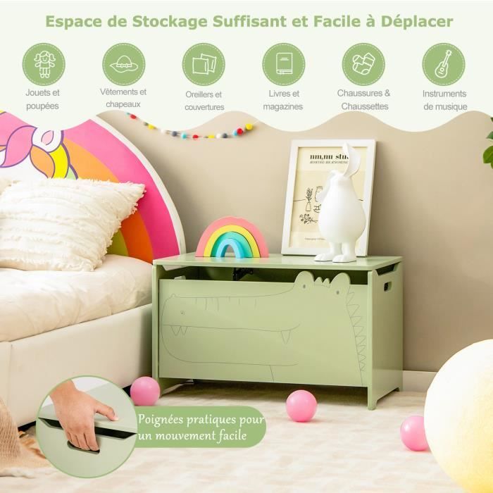 La charnière de sécurité protège les doigts, idéale pour le salon, salle de jeux, nurserie et chambre. Coffre de rangement enfant Dream espace de rangement interne : 57L x 31l x 30H cm. Coffre à Jouets Salon Chambre Coffre De Rangement, Avec 2 Charnières De Sécurité, Imitation Grange Rangement Salon Salle Jeux Sa finition peinte et imprimée est durable et charmante. Convient aux enfants de 3 à 8 ans , Montage nécessaire VASAGLE Coffre de Rangement, Meuble Entrée, avec 2 Charnières de... Normes de sécurité : EN71-1-2-3., Montage nécessaire. APPARENCE FRAÎCHE : Avec son design frais et attrayant, ce coffre de rangement pour jouets s'intègre parfaitement dans divers environnements tels que la chambre des enfants, la salle de jeux, le coin étude ou la salle de classe, instaurant un espace à la fois ordonné et charmant. Hzuaneri Banc de Rangement - Coffre de Rangement à Couvercle relevable... CONCEPTION SÉCURISÉE : Équipé d'un levier à gaz, le couvercle se referme en douceur et progressivement pour prévenir tout risque de pincement des doigts, assurant une utilisation sécurisée par les enfants. Sa hauteur réduite est idéale pour que les enfants puissent y accéder facilement, favorisant ainsi leur autonomie dans l'organisation. totales : 60L x 37l x 39H cm., Dim. Package includes: 1 x Coffre de Rangement pour Enfants 1 x Manuel Adapté aux enfants de 3 à 8 ans.