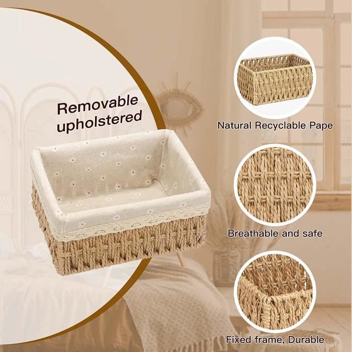 Capacité maximale Structure spacieuse à fond carré pour un contrôle optimal du désordre ce panier de rangement tissé organise sans effort objets volumineux et articles divers. Découvrez l'équilibre parfait entre fonctionnalité et style avec des paniers tressés pour le rangement. Simplifiez l'organisation de votre maison avec élégance et efficacité grâce à ces paniers tressés pour le rangement. L: environ 41x25x18cm / 16., 14x9., 84x7., 09 pouces Relaxdays Panier de rangement petite corbeille déco étagère 3 Matériau de qualité Conçu artisanalement en corde papier anti-usure, cette solution de rangement durable conserve son design stylé et fonctionnel pour répondre aux besoins d'organisation journalière Caractéristiques Nom du produit: Paniers tissés pour le stockage , Taille du produit: Panier en osier idéal pour la chambre de bébé Parfait pour ranger jouets, couches ou vêtements avec style et douceur Un rangement... Usage universel : Conçu pour servir de panier de chambre, d'organisateur pour salon ou de solution de rangement salle de bain, ce panier tressé offre un rangement flexible pour toute la maison qui s'intègre parfaitement dans divers environnements domestiques. Description du produit Panier de Rangement en Osier Tressé Idéal pour les boîtes et bacs de nursery, ces organisateurs s'adaptent à divers espaces, y compris la salle de bain, le placard, la cuisine, le -manger, le bureau, la chambre, la buanderie, l'entrée, la commode, le bureau, l'étagère, la table, le comptoir, le coin et le canapé. Panier Rangement Osier Panier De Rangement En Osier Tressé - Corbeille Déco Mignonne Corbeille Déco Corde Papier Tissée Couffin en Osier Tressé | L'Atelier Imparfait Spécification: Nom du produit: Paniers tissés pour le stockage Taille du produit: S: environ 35x20x15., 5cm / 13., 78x7., 87x6,1 pouces L: environ 41x25x18cm / 16., 14x9., 84x7., 09 pouces Matériel: corde papier + fer Poids du produit: S: environ 535 L: environ 605g Liste de colisage: Panier tissé pour le stockage x1 Note: 1., En raison des différents effets d'affichage et d'éclairage, la couleur réelle du produit peut être légèrement différente de la couleur indiquée dans l'image., Merci!, 2., En raison de la mesure manuelle, un écart de mesure de 1 à 2 cm est autorisé.