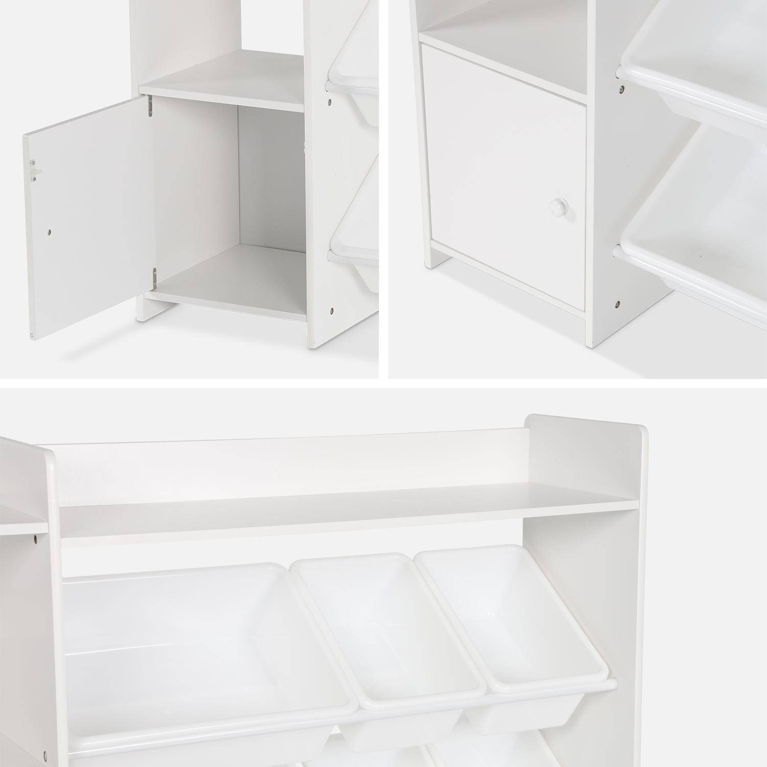 Bibliothèque pour enfant, 6 espaces de rangement, 3 portes I Découvrez notre meuble de rangement enfant, un compagnon idéal pour organiser les espaces de jeu et d'apprentissage de votre enfant. Doté de 3 étagères et de 2 espaces de rangement, cet organisateur de jouets offre amplement d'espace pour ranger les jouets, les livres et les fournitures scolaires Meuble De Rangement Enfant Blanc. 4 étagères étagère Jouets Enfant Blanc Description du produit Les + produit A hauteur d'enfant Anti-basculement 5 espaces de rangement ; 3 étagères Pratique et ludique Découvrez notre meuble de rangement enfant, parfait pour organiser les espaces de jeu et d'apprentissage. La hauteur adaptée favorise son autonomie et son sens de l'organisation. Meuble de rangement pour enfant. blanc - Camille - avec 3 étagères et 9... Sa conception anti-basculement assure la sécurité de votre enfant pendant ses explorations. Conserver le meuble éloigné de sources de chaleur et de liquides. 5 espaces de rangement ; 3 étagères , Pratique et ludique Ne pas laisser les enfants jouer sur ou près du meuble., A hauteur d'enfant , Anti-basculement