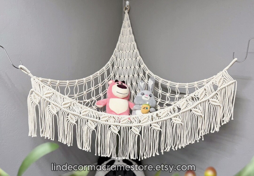 Déco Murale Jouets Filet De Rangement Suspendu Peluche, Organiseur De Jouets En Rangement Peluche Enfant STOCKAGE D'ANIMAUX EN Peluche Filet De Rangement Suspendu Pliable Plier... JPGhaha 100 * 100 * 120C Jouet Haac Pour Aniaux En Peluch Grande Économie D'Espace : Le hamac de rangement pour jouets utilise pleinement la position de suspension murale, système de suspension murale peu encombrant, conception rétractable, conception amovible, répond aux besoins de stockage de différentes familles L'organisateur de jouets pour peluches peut être facilement accroché dans un coin au mur et peut contenir de nombreux jouets en peluche et ne prend pas d'espace... Multifonctionnel : Le sac de rangement pour animaux en peluche peut non seulement stocker des peluches, mais aussi des articles ménagers ou d'autres aliments, c'est aussi une œuvre d'art pour embellir votre salle de séjour Grand Rangement De Jouets Muralisés : Le hamac pour animaux en peluche suspendu est fabriqué en bois de pin de haute qualité et en corde de coton tissée, 63 x 38 cm, peut contenir un grand nombre de jouets en peluche, gardant les jouets de votre enfant propres et bien rangés Design Pratique : Le porte-jouet en peluche est conçu pour être suspendu verticalement, facile à installer sur les murs plats, les plafonds, les coins, très pratique pour les enfants d'obtenir les jouets qu'ils veulent Le Paquet Comprend: 1 * Filet de rangement suspendu 2 * Crochet 2 * Anneau circulaire en fer