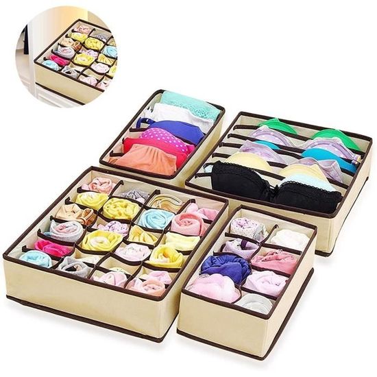 Lot 4 Organisateurs Pliables Tissu Lot De 4 Rangement Tiroir Sous Vetement Organiseurs De Tiroir Sous-Vtements Rangement Tiroir Rangement Sous Vetement Lot de 4 rangements pliables pour tiroir - Pour sous Lot de 4PCS rangement sous vêtement pliable Set de 4 pièces : organisateurs de tiroir en tissu non tissé, pliables et respirants Capacités variées : 24 cases (32x32x10 cm) pour chaussettes, 7 (32x32x10 cm) pour soutien-gorge, 8 (28x15x10 cm) pour sous-vêtements et 6 cases de 28 x 15 x 10 pour sous-vêtements. Facile à assembler : fermeture éclair en bas, panneau en PP amovible, pliable... La fermeture à glissière en bas permet de retirer et d'installer facilement la planche pp, et lorsque ce rangement n'est pas nécessaire, il peut également être facilement plié et placé sans prendre de place. Couleur : grigio Matière : non-tissé + coton lin + carton pp Contenu du produit : boîte de rangement pour sous-vêtements 6 compartiments : 32 * 16 * 10cm Rangement pour sous-vêtements 7 compartiments : 32*32*10cm Organisateur de chaussettes 8 compartiments : 32*16*10cm Organisateur de cravates 24 compartiments : 32*32*10cm Organisateur à cordon en toile (arbre de Noël) Organisateur (arbre de Noël) 【Gain de temps】L'ensemble de organisateur tiroir 4 pièces avec son design de stockage compartimenté unique vous aide à trier et organiser facilement toutes sortes d'objets, efficacement dire adieu à l'encombrement et fouiller dans la boîte pour rendre votre espace de vie plus organisé. Ce set de 4 organisateur de tiroir multifonctionnels est l'assistant idéal pour vous aider à organiser votre maison. La planche pp en bas est amovible, pratique pour le stockage lorsqu'elle n'est pas utilisée, ne prend pas de place, facile à installer lorsque vous avez besoin de l'utiliser, de sorte que l'utilisation de l'espace est plus efficace ! 【Excellent matériau】Le panneau PP au bas de l'rangement vetement est léger, dur, bon support et plus durable que le carton ordinaire, et le tissu non tissé est léger, imperméable à la poussière et lavable. 【Ce que vous obtiendrez】rangement dressing 4-piece PP board (detachable)/pessimiste + 1 x Christmas tree drawstring bag (cotton linen) + 1 x Christmas tree storage basket (cotton linen), cotton linen Christmas tree drawstring bag and storage basket, make the storage more interesting, add life mood. Choisissez ce set d'organisateur sous 4 pièces pour vous donner plus de temps, plus d'espace, plus de santé, et rendez votre vie à la maison nouvelle et ordonnée, en profitant de la combinaison parfaite de la propreté et du confort