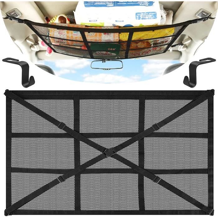 FILET DE RANGEMENT DOUBLE COUCHE POUR VOITURE - Le filet de rangement pour voiture est fabriqué en polyester de haute qualité, un filet de rangement en polyester double couche qui maintient bien les objets et a une forte capacité de charge. FILET DE BAGAGE RÉGLABLE POUR TOP DE VOITURE - Filet à bagages réglable pour voiture avec design carabine, en adaptant la longueur à différents types de voitures, convient à la plupart des véhicules. FACILE À INSTALLER - Le filet de toit pour voiture est très facile à installer, il suffit d'insérer la boucle dans la poignée de la rampe de toit et de la fermer pour compléter l'installation, et d'ajuster la longueur grâce à la bande élastique pour contrôler la position du filet, une personne peut facilement terminer l'installation. UTILISATIONS POLYVALENTES Le filet de toit pour voiture est idéal pour ranger des vêtements, des coussins, des couvertures et d'autres objets légers, ce qui permet de gagner beaucoup d'espace dans la voiture. Filet de plafond de voiture – Rangement triangulaire pour Les nouvelles bandes de sangle jouent un rôle solide, empêchent efficacement les objets de s'affaisser et ne bloquent pas le rétroviseur. FILET À BAGAGES RÉGLABLE POUR TOIT DE VOITURE Filet à bagages réglable pour voiture avec design à mousqueton, s'adaptant à différents types de voitures grâce à son réglage en longueur, convient à la plupart des véhicules., Matériau : polyester ., Poids : 185 g., Taille : 70 x 50 cm., Quantité : 1 pièce. Description du produit Description : - [Poche de rangement pour voiture] : la poche filet de plafond de voiture maximise l'espace de rangement, permet de ranger facilement les appuie-têtes, les jouets, les mouchoirs et autres objets essentiels sans prendre de place supplémentaire, gardant votre voiture bien rangée Double fermeture éclair c'est un accessoire automobile nécessaire pour les excursions et le camping. Description du produit FILET À BAGAGES DOUBLE COUCHE POUR VOITURE Fabriqué en polyester de haute qualité, ce filet de rangement double couche en polyester empêche efficacement les objets de s'affaisser et ne bloque pas le rétroviseur. AIR CONFORTABLE - Le filet à bagages de voiture pour le rangement est en maille, respirant, vous pouvez voir clairement les éléments à l'intérieur du filet de rangement, haute transparence, clair en un coup d'œil. Rangement Coffre De Voiture Filet De Rangement Universel Pour Plafond De Voiture, Sac De Rangement Organisation Coffre Rangement Léger EN STOCK : Rangement voiture pas cher. Grand choix, promos permanentes et livraison rapide partout en France. Paiement sécurisé APPLICATIONS POLYVALENTES - Le filet de toit pour voiture convient pour ranger des vêtements, des coussins, des couvertures et d'autres objets légers, ce qui permet de gagner beaucoup de place dans la voiture.