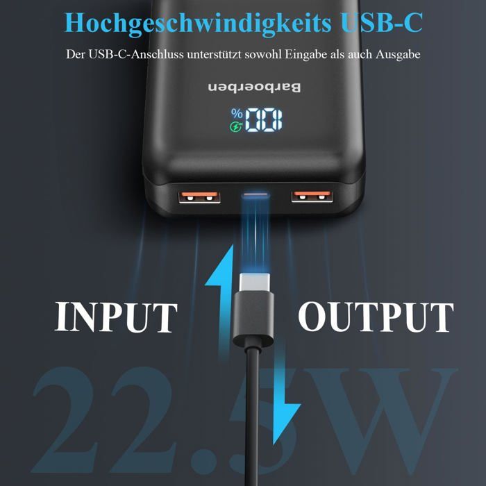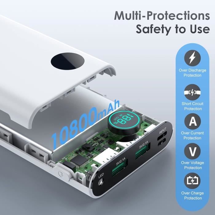 Charge Rapide PD QC4 Batterie Externe, Power Bank 20000Mah, Charge Rapide, Batterie Portable Entrée Usb-C, 2 Sorties Batterie Portable IPhone Android Avec 22,5 W PD via la sortie USB-C, la plupart des téléphones portables peuvent être chargés de 0 à 50 % de leur capacité en 30 minutes. [ Circuit intégré intelligent ] Le banc de puissance portable fonctionne avec un circuit intégré intelligent pour éviter la surcharge, la surtension, la surintensité et le court-circuit dans le... Power Bank 25 800 mAh 22,5 W PD3.0 QC4.0 snabbladdning USB C ingång och utgång bärbar laddare Entrée et sortie USB C, entièrement compatible avec les derniers modèles d'iPhone et d'iPad ainsi qu'avec tous les appareils USB C à venir. 14.99€ au lieu de 14.99€ Batterie Externe, 22,5 W 25800 mAh Power Bank, Batterie Portable USB C entrée et Sortie PD3.0 QC4.0 Charge Rapide Powerbank... (Remarque : le câble intégré prend en charge à la fois la charge et la recharge ; aucun câble supplémentaire n'est fourni., ) Rechargez votre téléphone jusqu'à 61 % en 30 minutes : grâce à une puissance améliorée de 22,5 W et aux dernières technologies de recharge rapide PD3., 0 et QC4., 0, votre téléphone peut être rechargé à 61 % en seulement 30 minutes. Vous pouvez ainsi profiter partout d'une expérience de recharge puissante et portable, idéale pour une utilisation en déplacement. Équipé d'une batterie haute performance de 25 800 mAh, il vous permet de ne plus vous soucier de l'autonomie de votre appareil, que vous le rechargiez quotidiennement sur le chemin du travail, que vous l'emportiez avec vous comme batterie de secours pour de courts trajets ou que vous l'utilisiez pendant de longues périodes en camping ou en voyage d'affaires.