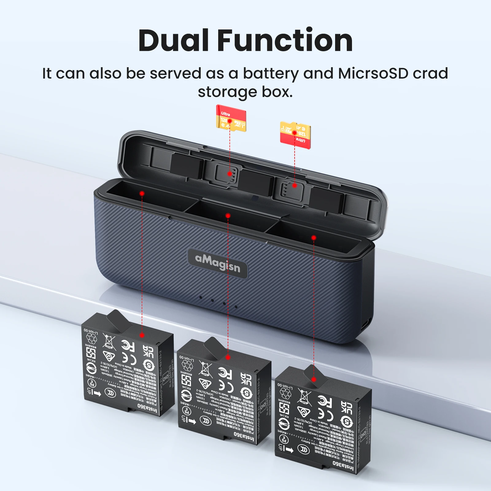 Insta360 Ace Pro 2/Ace Pro/Ace Fast Charge Hub L'alimentation mobile commute intelligemment le mode de charge en fonction de l'état de charge afin de protéger vos batteries. L'USB-C offre une puissance de sortie de 20 W pour le PD3.0, permettant de recharger rapidement votre téléphone portable ou votre caméra de sport Chargeur USB-C Pour Ace Pro 2 Hub De Charge Rapide Pour Insta360 X5 : Station De Stockage Batterie LED Portabl Hub Usb-c Batterie Camera Action Le concentrateur de charge permet un accès rapide au pourcentage de la batterie, à la tension, au courant, au nombre de cycles et à la température sans nécessiter de source d'alimentation externe, vous tenant informé de l'état de la batterie à tout moment. Vérification de l'alimentation à une touche: Aucune alimentation externe nécessaire-insérez simplement la batterie pour afficher instantanément les données clés (tension, nombre de cycles, etc. Le hub de charge permet d'accès rapide aux pourcentages de la batterie, de tension, de courant, de comptage de cycle et de température sans nécessitant une... Technologie de charge mixte intelligente: Comprend des algorithmes intelligents pour identifier automatiquement les caractéristiques chimiques des batteries Ace Pro 2 (4,48 V) et Ace Pro/Ace (4,40 V), en appliquant des courbes de charge sur mesure pour une charge mixte sûre et efficace sur différents modèles. ), ce qui facilite la surveillance de l'état de la batterie pour une prise de vue sans souci en déplacement. La puissance totale de 24 W optimise la vitesse et la sécurité, idéale pour les demandes de prise de vue à haute intensité. Charge rapide sûre et gestion thermique: Conçu avec une protection multi-circuits et une surveillance de la température pour assurer une charge rapide sûre et à basse température.