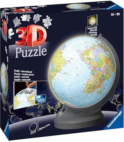 UN CADEAU IDEAL pour tous les fans d'astronomie ! Elle s'allume et s'éteint en claquant des mains ou grâce à un simple interrupteur. Colle à Puzzle Ravensburger - Puzzle 3D Ball éducatif - Globe Phosphorescent 180 P - La Carte Du Ciel étoilé - A Partir De 6 Ans - 180 Pièces Numérotées à Assembler Sans Colle - Support Rotatif Inclus - 11544 Puzzle 3d Pokemon Puzzle 3D Ball Les sirènes - Ravensburger - 72 pièces numérotées - Pour... Fonctionne avec 3 piles LR06 non fournies. Il suffit de suivre l'ordre des numéros et le sens des flèches indiqués au verso des pièces de puzzle. A utiliser sous la surveillance d’un adulte. ENVIRONNEMENT : Fabriqué en Europe, ce puzzle est composé de matériaux issus de forêts bien gérées certifiées FSC, de matériaux recyclés et de matériaux issus d’autres sources contrôlées (FSC-C111262 ; FSC : organisme à but non lucratif qui protège, contrôle et encourage la gestion durable des forêts). Partez à la découverte de l'espace avec ce puzzle 3D qui se transforme en lampe et admirez les étoiles s'illuminer sous vos yeux ! Avec son socle lumineux, il se transforme en véritable lampe qui s'allume et s'éteint lorsqu'on claque des mains ! Ce puzzle 3D peut s'assembler seul ou à plusieurs pour partager un moment de convivialité en famille ou entre amis. Risque d’asphyxie par ingestion de petites pièces. Zone L'aide | Puzzle 3D - Coent choisir le bon odèle? explications... HAUTE QUALITE : La technologie Easyclick et la qualité de découpe des pièces permettent un encastrement parfait et assure ainsi la solidité du puzzle 3D, le tout SANS la moindre COLLE ! Un cadeau parfait pour décorer sa chambre d'enfant, ou pour toute autre occasion : Noël, un anniversaire ou juste pour le plaisir ! Ne convient pas aux enfants de moins de 36 mois. 3D - Ball 3D - Astronautes Ravensburger-11264 72 pièces