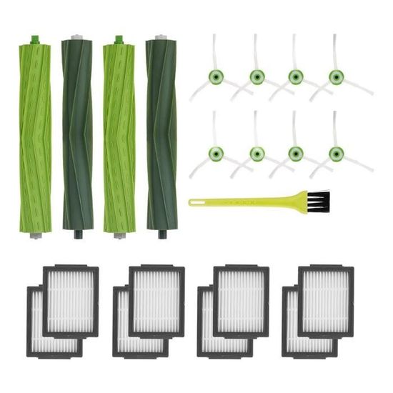 B : 2 brosses principales + 8 filtres + 8 brosses latérales + 1 brosse de nettoyage. * Matériau robuste : fabriqué en matériaux de haute qualité, la pièce de rechange est durable et robuste, pas facile à casser et à déchirer pour fournir une longue durée de vie. Accessoires Aspirateur Robot PièCes De Rechange Brosse à Rouleau Brosses LatéRales Filtres Pour Pièces Détachées IRobot Puissance de nettoyage efficace : Ce kit de pièces de rechange est conçu pour maintenir les performances de nettoyage optimales de votre aspirateur iRobot Roomba. La combinaison de la brosse principale, des brosses latérales et des filtres assure un enlèvement complet de la saleté et des débris de vos sols.Facile à installer et à remplacer : Profitez d'un entretien facile et sans... Caractéristiques : * Nom du produit : kit de filtres pour brosses latérales principales. Caractéristiques : * Brosse principale : le kit est livré avec une brosse principale de haute qualité qui recueille efficacement la poussière, la saleté et les débris de différentes surfaces. Il est parfait pour les maisons avec des animaux domestiques et des enfants, un meilleur environnement de vie. Matériaux de qualité supérieure : fabriqué avec une combinaison de nylon, de plastique et de papier filtre, ce kit de rechange est conçu pour durer et résister à l'usure quotidienne, idéal pour les maisons avec des animaux domestiques et des enfants. Couleur : conforme à l'image. Ses poils solides assurent un nettoyage en profondeur et laissent vos sols impeccables. ) pour une performance durable. * Maintient des sols propres et hygiéniques : avec une utilisation régulière de la pièce de rechange, vous pouvez maintenir des sols propres et hygiéniques. Gardez les performances de votre Roomba® série 105 au plus haut niveau avec ce kit d'entretien complet et 100 % officiel iRobot. Conçu pour un remplacement facile, ce pack regroupe les éléments essentiels pour maintenir une aspiration efficace et un nettoyage optimal de votre robot au fil du temps. Contenu du kit : 3 filtres, 3 brosses latérales Edge-Sweeping, 1 brosse principale multi... Contenu de l'emballage : A : 1 brosse principale + 4 filtres + 4 brosses latérales + 1 brosse de nettoyage. [Brosse principale haute performance] : la brosse rouleau améliorée avec poils en nylon capture efficacement la poussière, les poils d'animaux et les débris des sols durs et des tapis, améliorant l'efficacité du nettoyage à chaque utilisation. Les brosses latérales éliminent efficacement la saleté et la poussière, laissant vos sols complètement propres. Principale de Filtre Hepa pour IRobot Roomba I7 I6 I4 I3 plus J7 E5 E6