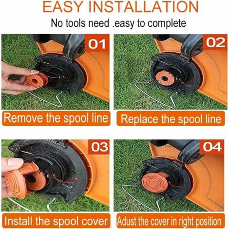 Ligne de bobine de rechange pour tondeuse Worx, pour tondeuse à gazon Les lignes en nylon sont souples et flexibles, ce qui permet aux lignes de s'étirer et d'amortir lorsque la surface dure frappe. Kit 20 Bobines + Capuchons Bobine De Rechange Line Trimmer 30Ft 0.065 Pouce Pour Noir + Decker AF Fil Débroussailleuse Automatique Contenu : 20 bobines de fil pour débroussailleuse., 2 capuchons de rechange Principaux points forts · Compatibilité : cette bobine de fil pour coupe-bordure est conçue pour être compatible avec les débroussailleuses sans fil WA0010 12 bobines de trimmer 1.65 mm recharges pour tondeuse avec 2 capuchons de protection pour WORX WA0010 YYV · Présentation du produit · Descriptif technique · Avis... Contenu de l'emballage : 20 paquets de bobines de fil de 3 m x 1,65 mm et 2 capuchons de rechange compatibles avec les coupe-bordures. Remplacement du système d'alimentation automatique : le système de bobine de rechange élimine le temps passé par les débroussailleuses manuelles. Bobines pour WA0010 et capuchons pour WA6531 GT. Taille du capuchon de coupe : 5,7 x 3,2 cm. Utilisez la force centrifuge et l'aérodynamique pour réduire la traînée et obtenir une coupe rapide. Longueur du câble : 3 m x 1,65 mm.