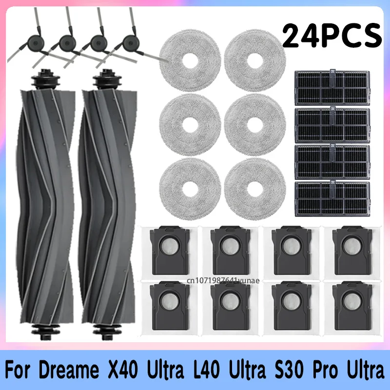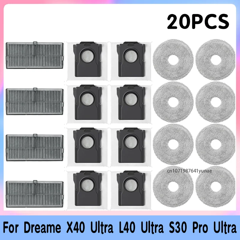 Kit D'accessoires Pour Dreame X40 Ultra, Ensembles De Rechange Pour Aspirateurs X40 Master L40 Ultra Avec Brosse Principale 4 Brosse Laterales 2 Filtres Hepa 6 Chiffon 6 Sacs 20 Pieces 87139411 【3,2L Sacs à poussière】- Sacs à Poussière fabriqué à partir d'une couche filtrante en fibre Meltblown de haute qualité et d'un tissu non tissé, il peut filtrer efficacement 99 % des substances nocives. Filtres Hepa Lavables Pièces De Rechange Pour Dreame X40 Ultra / L40 Ultra / X40 Pro / S30 Pro Ultra Accessoires, Brosse Latérale Principale, Filtre, Vadrouille, Gril, Sac à Poussière Kit Entretien Robot Aspirateur Vous fournir de l'air pur. Applicable Lingettes avec support accessoires pour Dreame L10s Pro... FOREHILL Kit accessoires pour Dreame X40 Ultra Complete / L40 Ultra, 21... 【Garantie】- Si vous n'êtes pas satisfait à 100 % de nos produits pour une raison quelconque, n'hésitez pas à nous contacter à tout moment. Grande capacité de 3,2L capture la poussière, la saleté et les poils d'animaux pendant 8 semaines. Nous résoudrons le problème pour vous dans les 24 heures. La brosse principale coupe automatiquement les cheveux enchevêtrés lorsqu'ils sont roulés, empêchant efficacement les cheveux de se boucher et de tirer, et facile à manipuler les cheveux des animaux domestiques et des humains. 【Serpillères de qualité】- Fabriqué en microfibre de haute qualité, très absorbant pour un meilleur nettoyage, élimine efficacement les taches tenaces. Veuillez confirmer votre modèle avant de passer commande.
