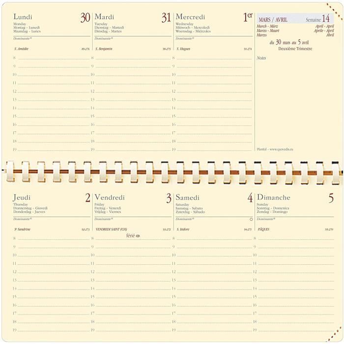Agenda 2025 16x16 Quo Vadis - Agenda - Spiralé - 2025 - Tie & Life Pocket - Seainier Agenda Quo Vadis 2025 16x16 Agenda Spiralé Medium 16x16 Cm QUO VADIS - 1 Recharge D'agenda Semainier Time & Life Format 16x16 Cm Clairefontaine Les agendas organiseurs, aussi appelés timer Quo Vadis, sont des agendas rechargeables aux couvertures amovibles avec des anneaux. Ils existent avec une organisation du temps à la journée ou à la semaine Agenda hebdomadaire tout en couleurs, avec présentation de la semaine sur 2 pages afin d'offrir une vue d'un seul coup d'œil Si vous achetez cet article entre le 1er novembre et le 25 décembre 2025, il peut être retourné jusqu'au 31 janvier 2026 ou dans un délai de 30 jours à compter... Plage horaire : 7h - 21/23h, Tranche RDV : Demi-heure Comprend sur chaque double page une zone libre pour y noter ses rappels (personnes à contacter, choses à faire…)